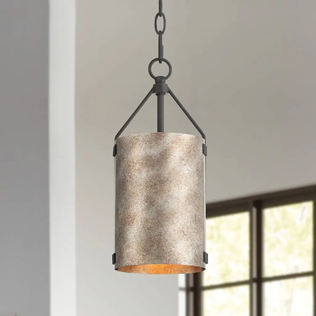 Dress up a casual living space with this stylish drum mini pendant. A slim drum features a multi-tonal rustic silver finish that glows in rustic or industrial decor. Clean lines make this a fabulous addition to an inviting breakfast nook or dining room.