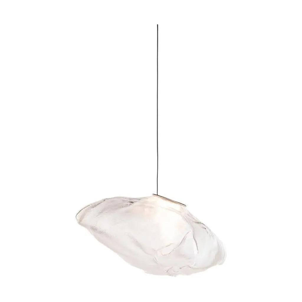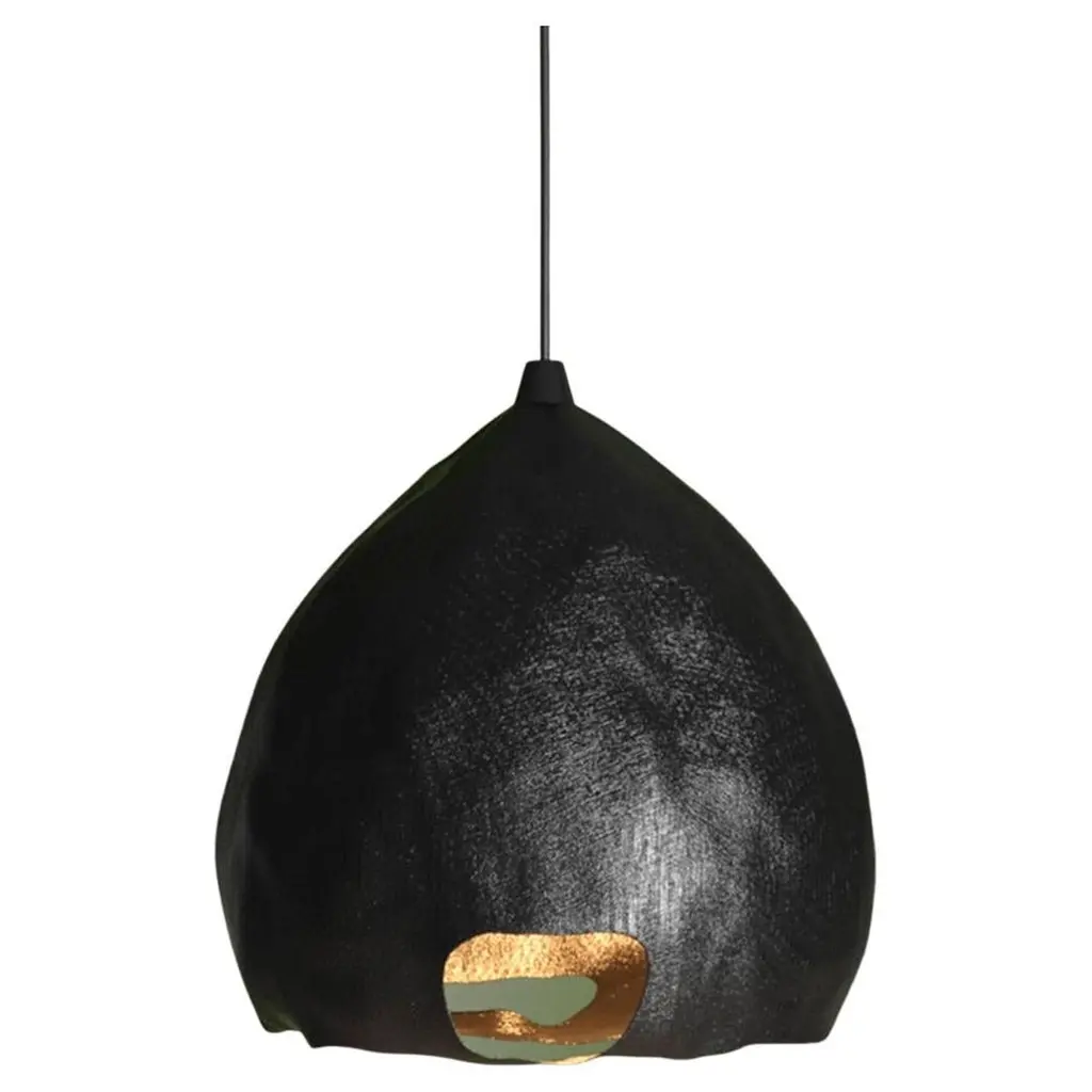 The PostKrisi Pendant from Catellani & Smith is a mood-setting presence, feeling airy yet weighty overhead with a handcrafted fiberglass volume. The single form on display underscores Catellani & Smith’s goal of giving shape to light. All eyes focus on the form by hanging overhead with a visually-disappearing cord suspension. Designed with versatility and strength in mind, the handcrafted fiberglass shade presents itself in a familiar yet abstract silhouette. The wide, pointy shape captivates with rich texture from edge to edge. Its generous opening lets a pool of warm light cast below, leaving behind an artful silhouette