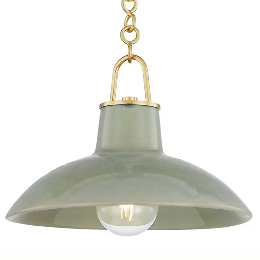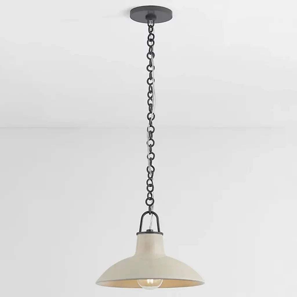 The Pottersville Pendant from Hudson Valley Lighting celebrates artisanal craftsmanship through Vietnamese pottery traditions. Each ceramic piece undergoes specialized glazing techniques that produce distinctive surface effects. The uncluttered form lets the handcrafted details take center stage. This pendant brings artistic character to dining areas, kitchen islands, or entryways. The transparent glaze reveals subtle variations in the clay body beneath, highlighting the organic nature of hand-thrown ceramics. Three suspension points provide stable support while maintaining the pendant's clean lines.