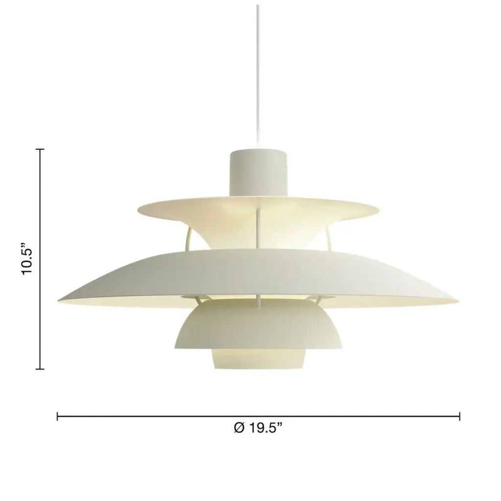 Poul Henningsen 'PH 5' Pendant for Louis Poulsen in Monochrome Pale PewterPoul Henningsen introduced his iconic 'PH 5' pendant light in 1958. Six decades later, the 'PH 5' remains the bestselling design in Louis Poulsen's portfolio, with a wide variety of hues and finishes providing elegant, iconic, glare-free light.The 'PH 5' Pendant is executed in spun steel and aluminum with roller aluminum struts and a frosted glass diffuser. The Monochrome series of shades are wet painted.Price is per item. Available in unlimited quantities in 9 monochrome color options. Also available in other colors, pastels, metals, and in a mini version in separate listings. This listing is for the 'PH 5' pendant in monochrome pale pewter with a white cord and white canopy. In-stock lead time 1-3 days. Out of stock lead time may take 6-8 weeks. Please note that inventory can change at any time. For time-sensitive orders, please inquire prior to purchasing.UL Listed. Accommodates a single 22W LED A-21 medium base bulb. Bulb not included. Ships with 12' of fabric cord and matching canopy. Burgundy, Black, Dusty Indigo have black cord and canopy and all other variants come with white cord and canopy.Made to order.All sales final.