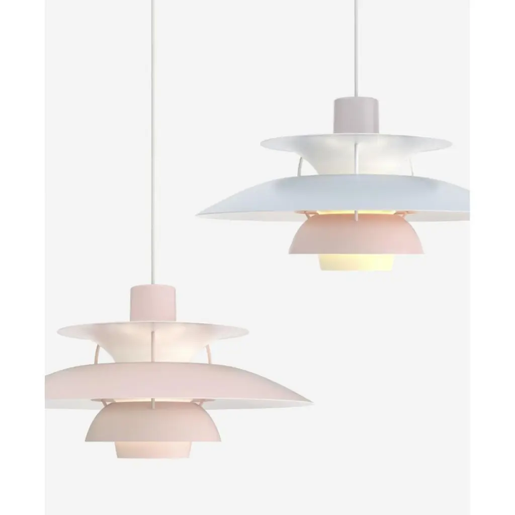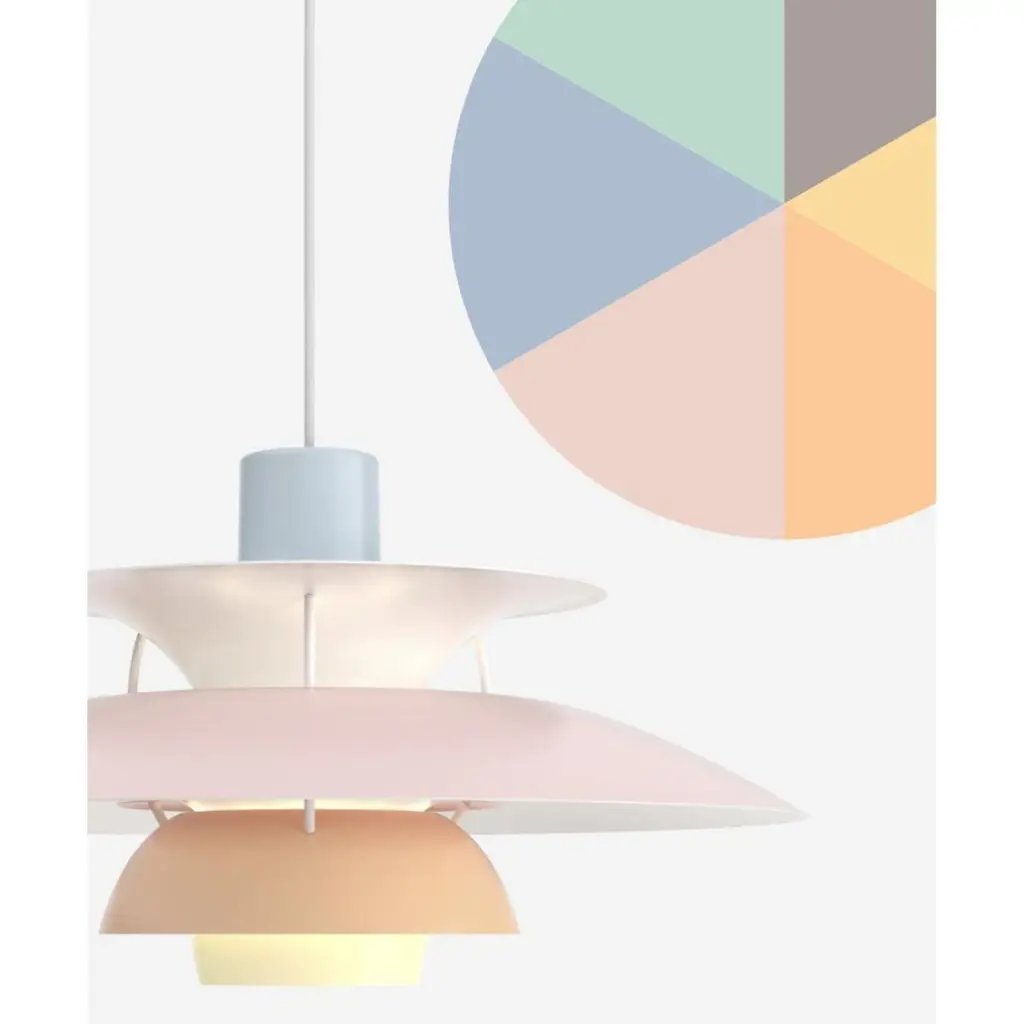 Poul Henningsen PH 5 pendant for Louis Poulsen in monochrome oyster grey. Poul Henningsen introduced his iconic PH 5 pendant light in 1958. Six decades later, the PH 5 remains the bestselling design in the Louis Poulsen's portfolio. The PH 5's painted metal shades brilliantly distribute light to create glare–free illumination. Executed in spun aluminum shades, sand–blasted glass and aluminum struts.Price is per item. Unlimited quantities available. Available in pale rose, oyster grey, blue rose peach pastel, oyster blue rose pastel, classic white, modern white, hues of orange, hues of rose, hues of red, hues of green, hues of blue and hues of grey as well as monochrome colors of all black, blue and white. This listing is for the monochrome oyster grey.UL Listed. Maximum 22 W equivalent LED bulb. A-21/medium bulb (not included). Ships with 12' of white cloth cord and white canopy.In stock lead time 1-3 days.. Out of stock additional 6 weeks or more. Availability subject to change without notice. Made to order.All sales final.