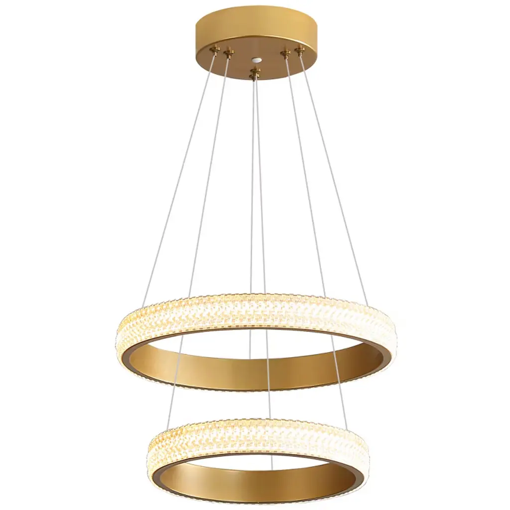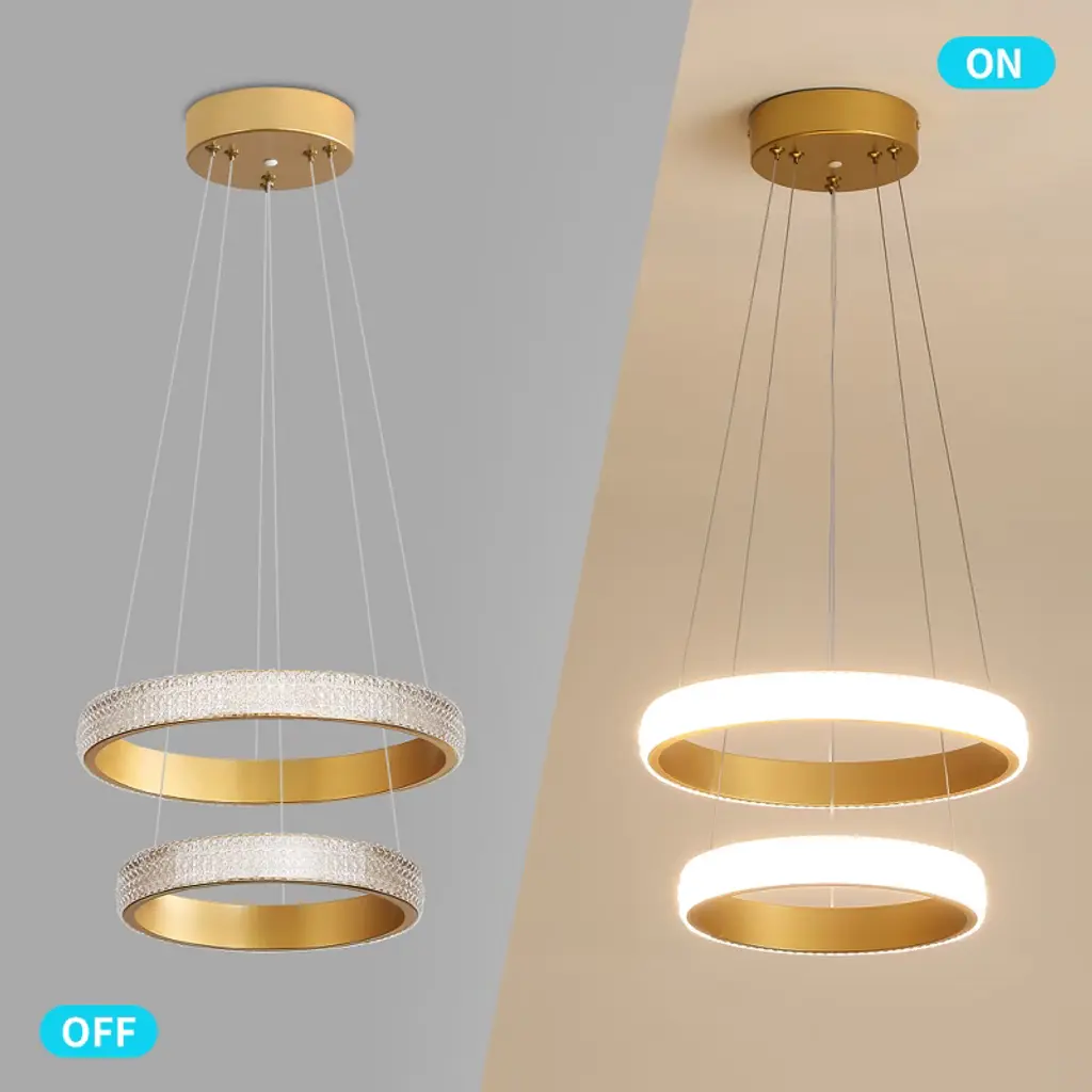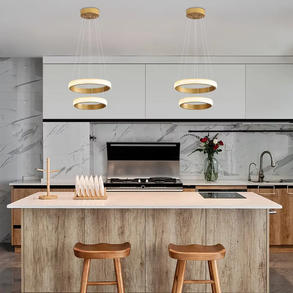 Powlig 2-light Gold Modern Pendant Light - Adjustable Ring Chandelier With Integrated Led For Dining Room & Living Room