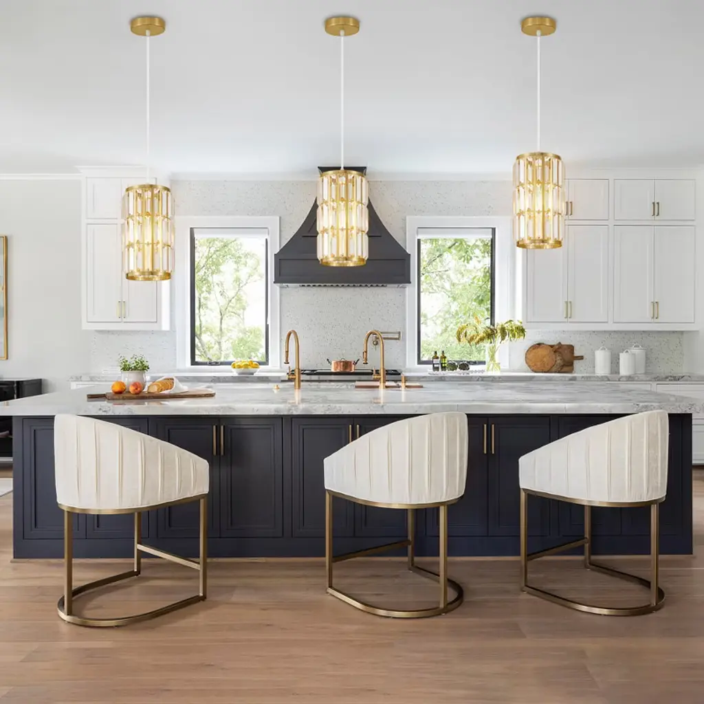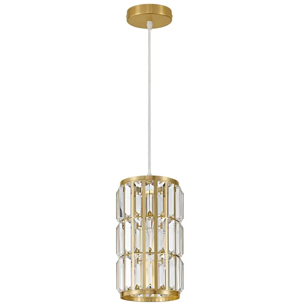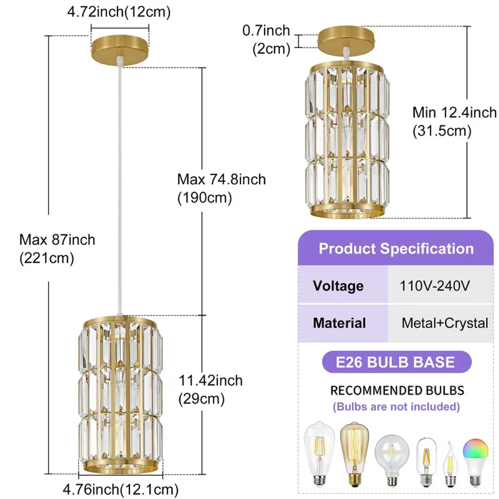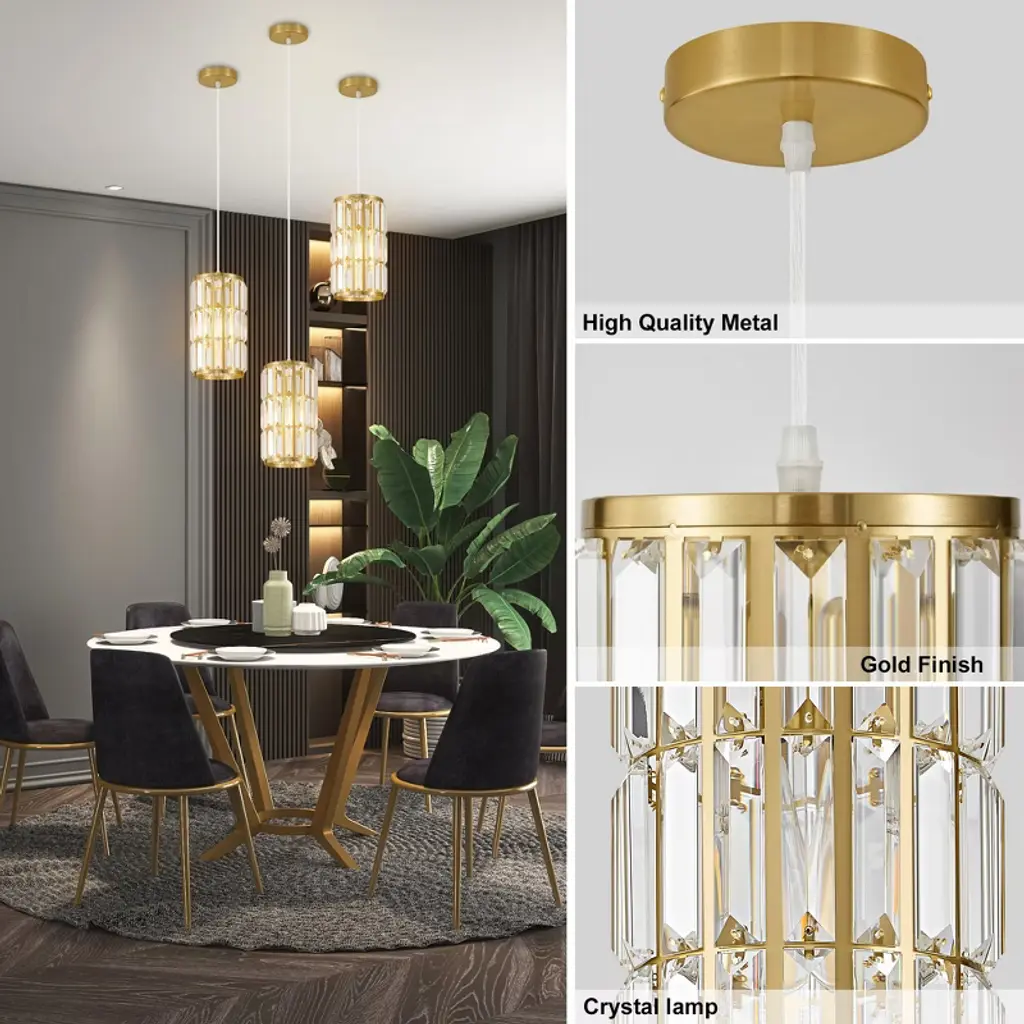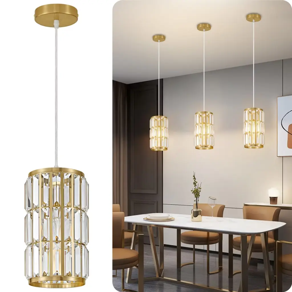 Powlig 4.76" Modern Gold Pendant Light - Adjustable Height Crystal Ceiling Fixture For Kitchen Island & Dining Room