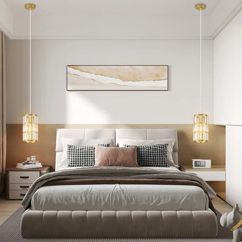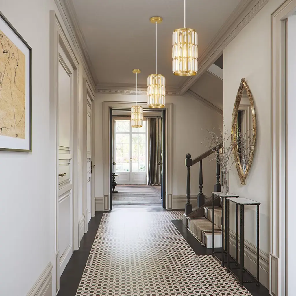 This exquisite chandelier combines modern design with timeless elegance, featuring handcrafted multi-faceted crystal chains that create dazzling light refraction, paired with a high-quality metal frame for a sleek, luxurious centerpiece. Its versatile design accommodates various installation heights, functioning equally well as a statement chandelier or refined ceiling light, with universal 110V-240V voltage compatibility and standard E26 bulb base (bulbs not included) for easy customization. Perfect for bedrooms, dining rooms, or living spaces, the gold finish reflects light beautifully while the premium crystals distribute warm, inviting illumination throughout the space.