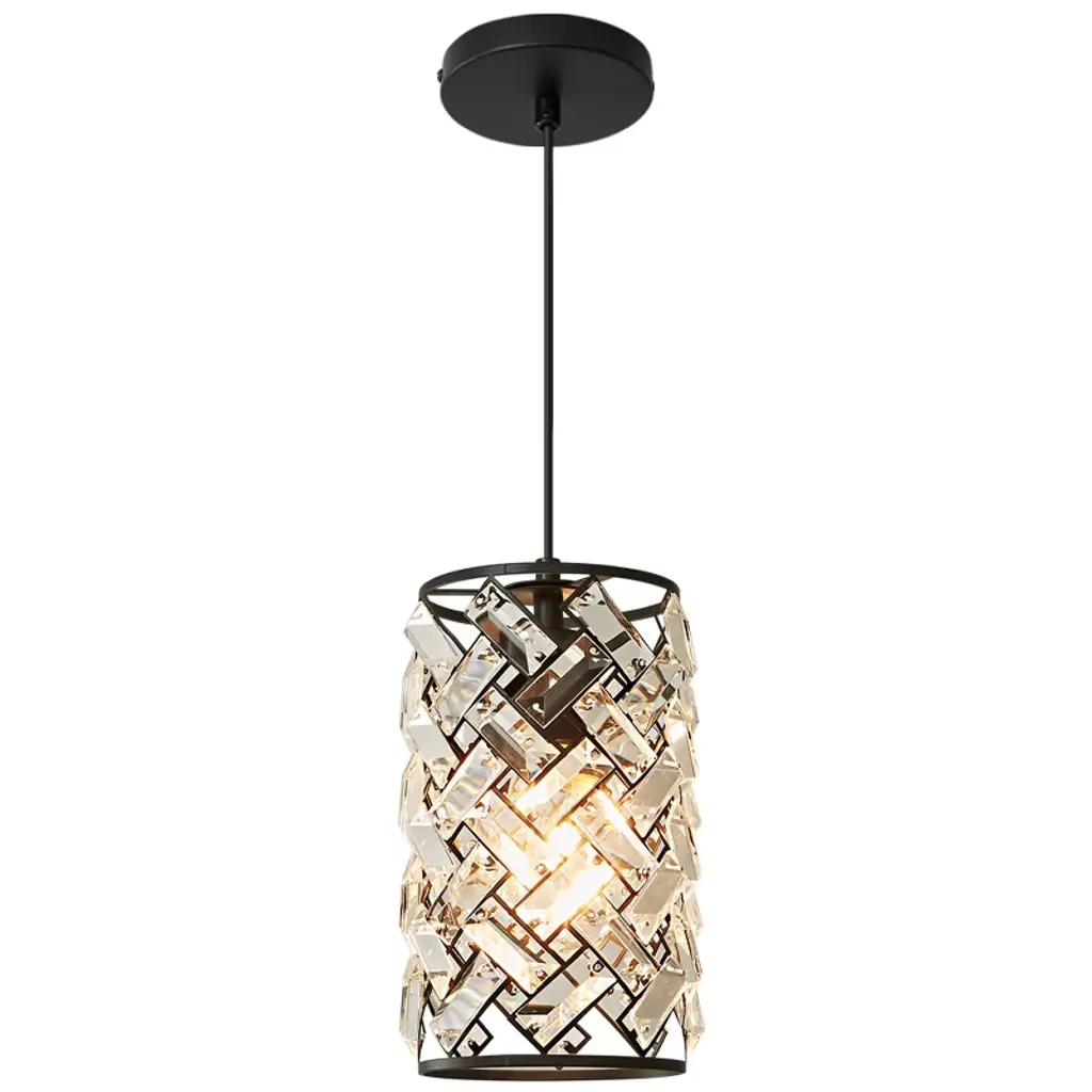 Powlig 6.2" Black Crystal Pendant Light - Adjustable Modern Luxury Round Chandelier For Dining Room & Entryway