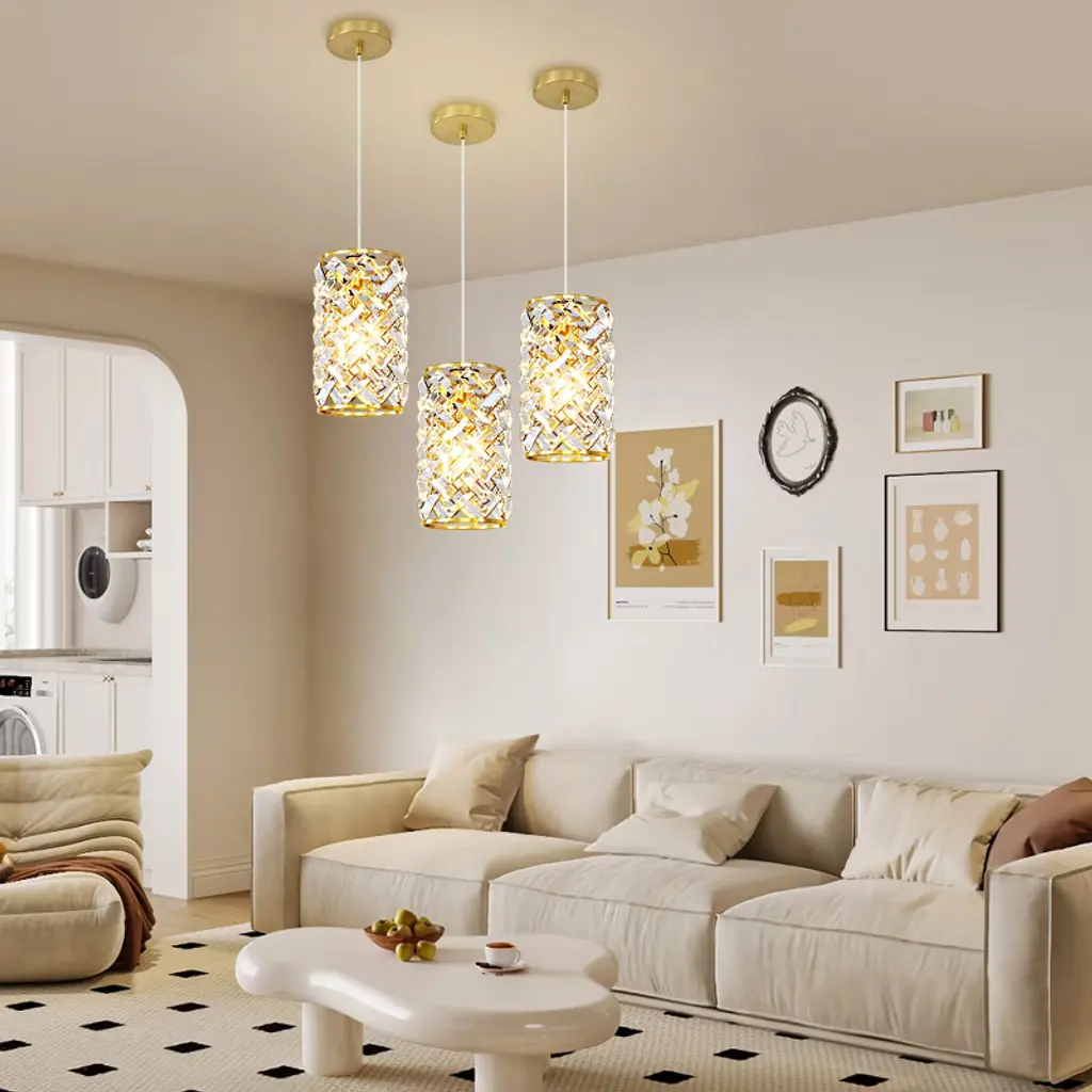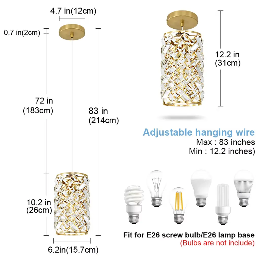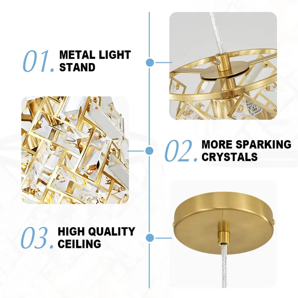 This exquisite lighting fixture combines timeless elegance with modern functionality, featuring a polished metal frame and handcrafted multi-faceted crystal accents that create dazzling light refraction. The high-quality gold finish complements the sparkling crystals, producing a luxurious visual effect whether illuminated or unlit. Designed for versatile placement, it functions beautifully as both a statement chandelier and refined ceiling light, with an adjustable suspension system that accommodates various ceiling heights. Compatible with standard E26 bulbs (not included) and universal 110V-240V voltage, it easily adapts to bedrooms, dining rooms, living spaces, or entryways.