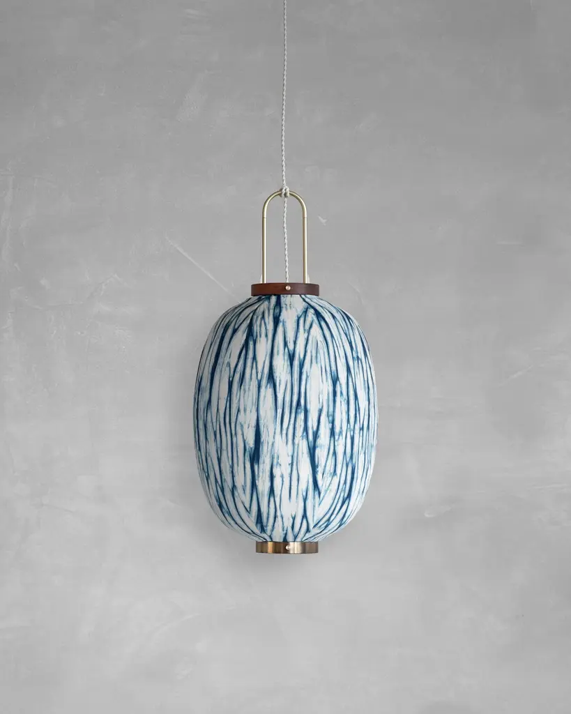 PP02O Pendant Lamp XL by Taiwan LanternDimensions: D 46 x W 46 x H 68 cm.Material: Walnut & bamboo frame, Hand-colored fabrics, Metal pipes, Leather lace, Handmade porcelain ceiling cap.This brown color is inspired by Wu Xing 五行. Brown presents Tu 土,earth, which signifies neutrality and good luck. The lantern is hand painted and finished with a layer of Tung oil which gives the lantern a smooth satin finish.Founded in 2013 by Pei-Ching Hsiao, Taiwan-Lantern is an Amsterdam-based studio on a mission to revive Taiwan's rich traditions and century-old craftsmanship. Beyond the common perception of mass production and electronics, our studio cherishes Taiwan's unique heritage, crafting items with stories and memories.We work with Taiwan’s last remaining traditional lantern factory and the finest local artisans. Together we embarked on an adventurous journey to modernize the design, optimize the quality, and return to natural materials.Each lantern involves various crafts, from ceramics, fabric dyeing with plants, painting, traditional knotting, woodworking, metal welding, and bamboo crafts. By combining these diverse traditional crafts, we honor our beloved heritage and advance the evolve the art of lantern making. Each lantern represents Taiwan's rich cultural legacy.We prioritize sustainability, using 95% locally sourced natural materials. Our lantern frames, crafted from walnut wood and locally grown Makino bamboo, connect Taiwan's historical roots with a sustainable future, infusing each lantern with heart and soul.