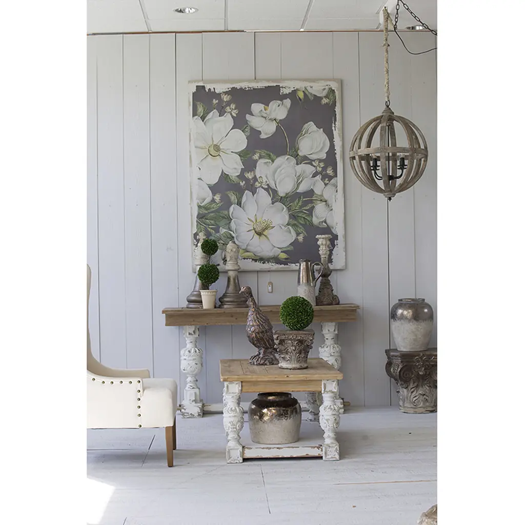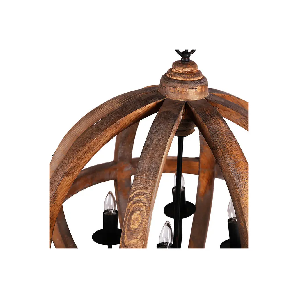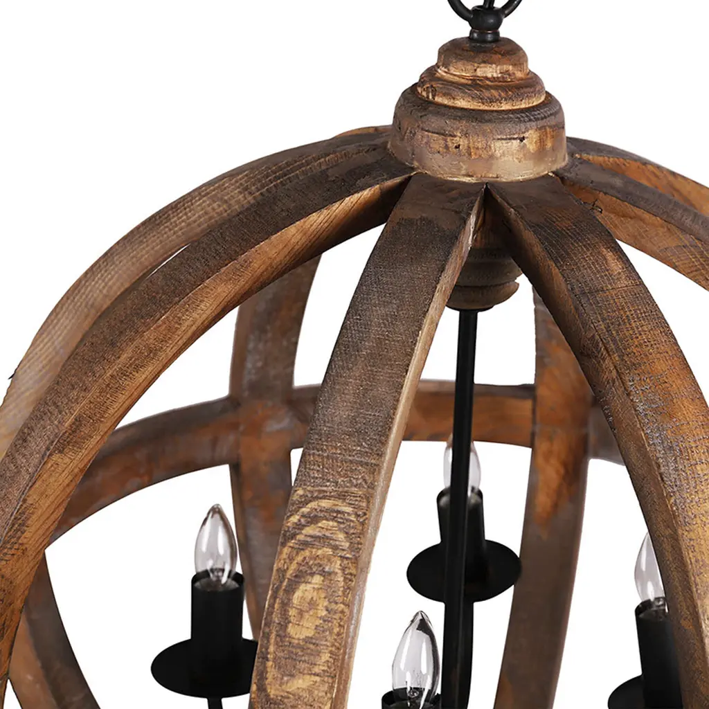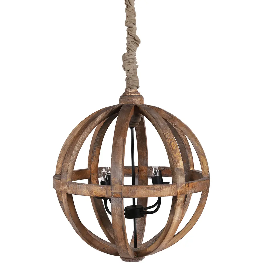 The Pratt Sphere Four-Light Chandelier adds a warm, inviting look to any space with its globe design, rich wood, and contrasting black iron fixture. with its simple style, the Pratt Chandelier enhances a variety of styles with its appealing, versatile look. Hang in a farmhouse kitchen, eclectically-decorated living room, lofty foyer, or above a modern dining table, .