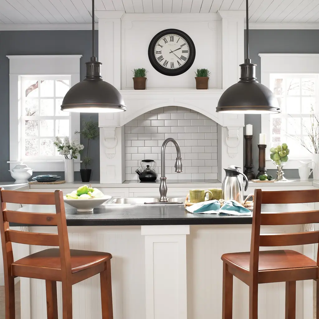 Inspired by industrial lighting, the hard-working, large-scale Pratt Street metal pendants by Sea Gull Lighting put light where you need it, while making a significant design statement. Offered in a choice of Brushed Nickel, Satin Brass or Autumn Bronze finishes, the one-light, two-light and three-light pendants are all fully enclosed with a prismatic diffusor at the bottom to spread light output evenly and alleviate glare. The pendants are available in incandescent and ENERGY STAR-qualified LED versions, and all can easily convert to LED by purchasing LED replacement lamps sold separately. Features