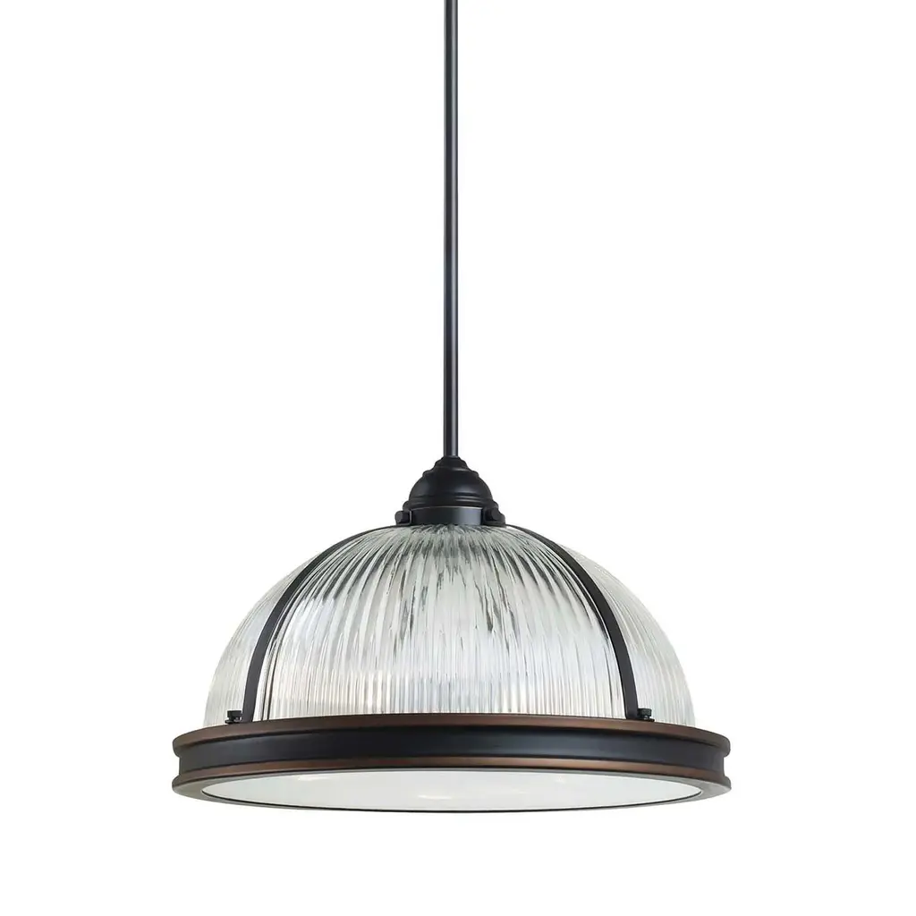 The Pratt Street Prismatic one light indoor pendant in autumn bronze is the perfect way to achieve your desired fashion or functional needs in your home. Inspired by industrial lighting, the hard-working, large-scale Pratt Street prismatic pendants by put light where you need it, while making a significant design statement. Offered in a choice of Brushed Nickel or Autumn Bronze finishes, the one-light, two-light and three-light prismatic glass pendants are all fully enclosed with a prismatic diffusor at the bottom to spread light output evenly and alleviate glare. The pendants are available in incandescent and ENERGY STAR-qualified LED versions, and all can easily convert to LED by purchasing LED replacement lamps sold separately.