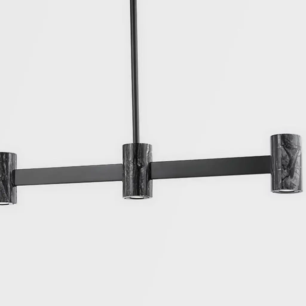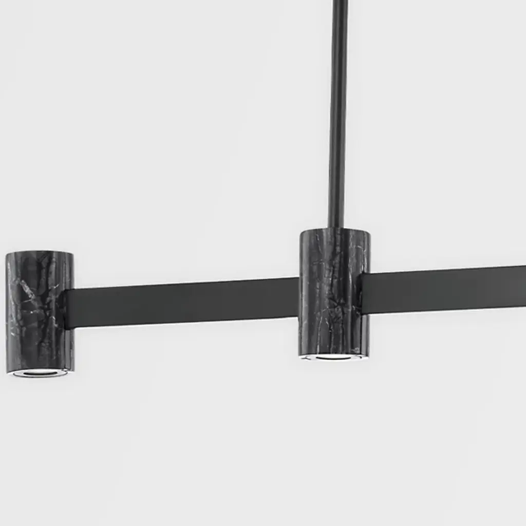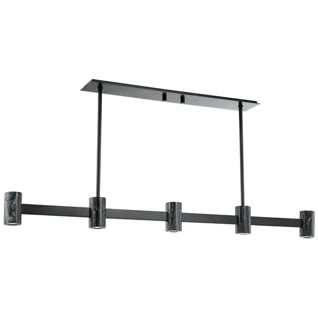 The Predock LED Island Pendant by Hudson Valley Lighting is a bold contemporary fixture for kitchens, countertops, and cafe areas. Ideal for home and commercial use, this fixture features a long and stately profile that lends personality to surfaces with its Nero madera marble shades and a matching steel frame. With its five light design, it's a smart and stylish modern touch that creates presence and proportion in open spaces.