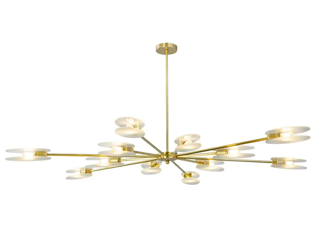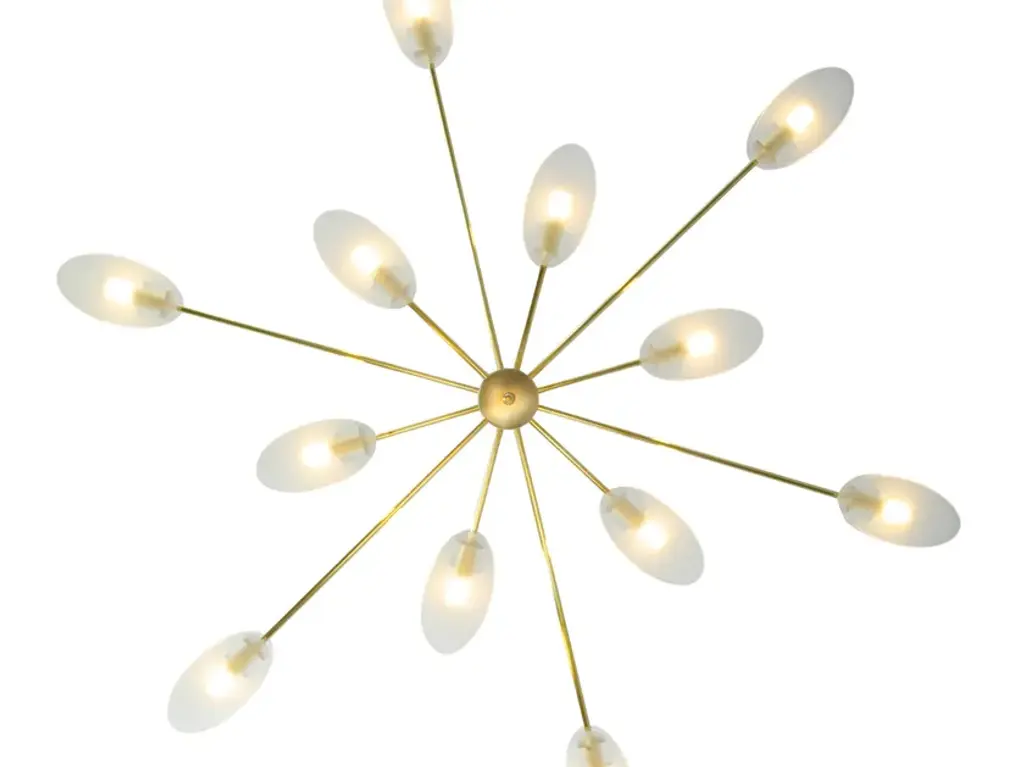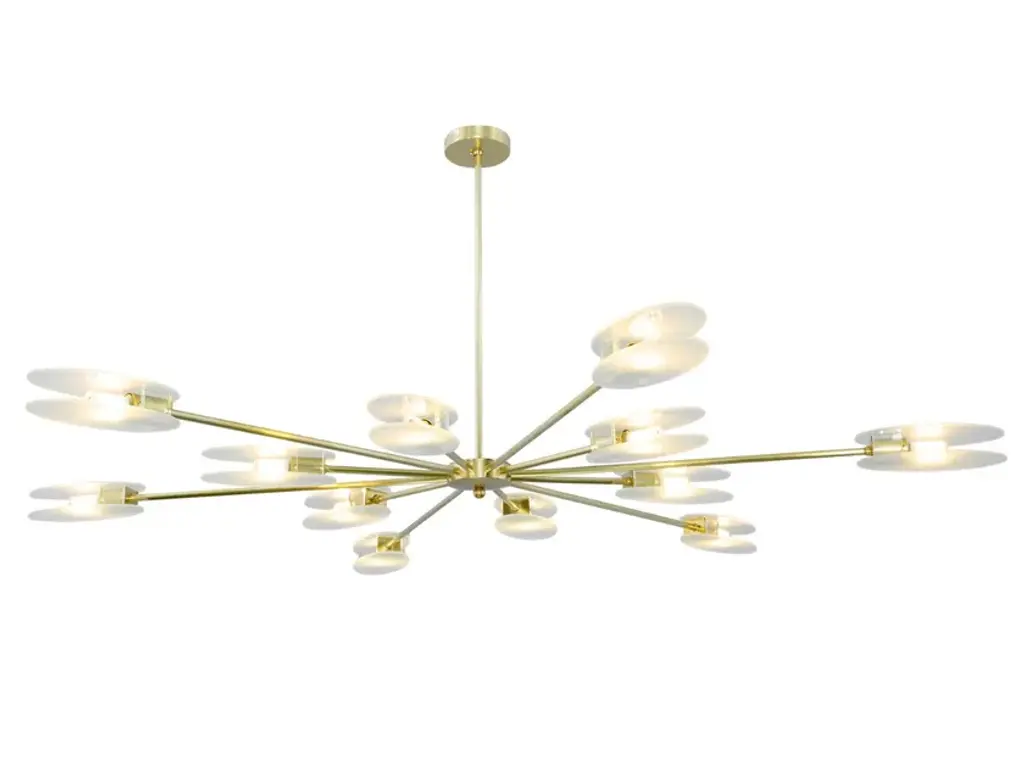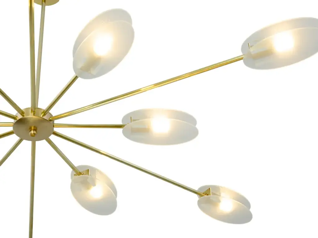 PRESENT CHANDELIER 3 is a dimmable LED pendant lamp in brass and glass from the PRESENT collection by Patinas. Available in different finishes.Finish: antique, shiny brass, matt brass, shiny nickel, matt nickelLight source: 12x6W G9 dim LEDMaterial: brass, glass