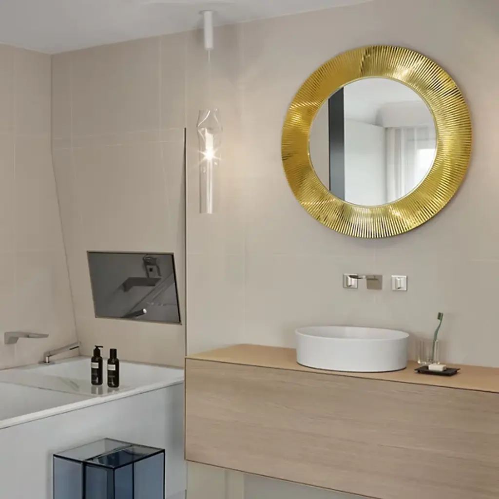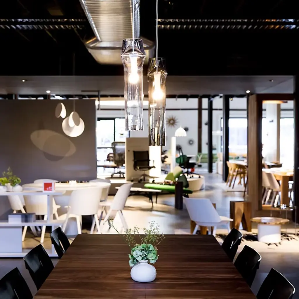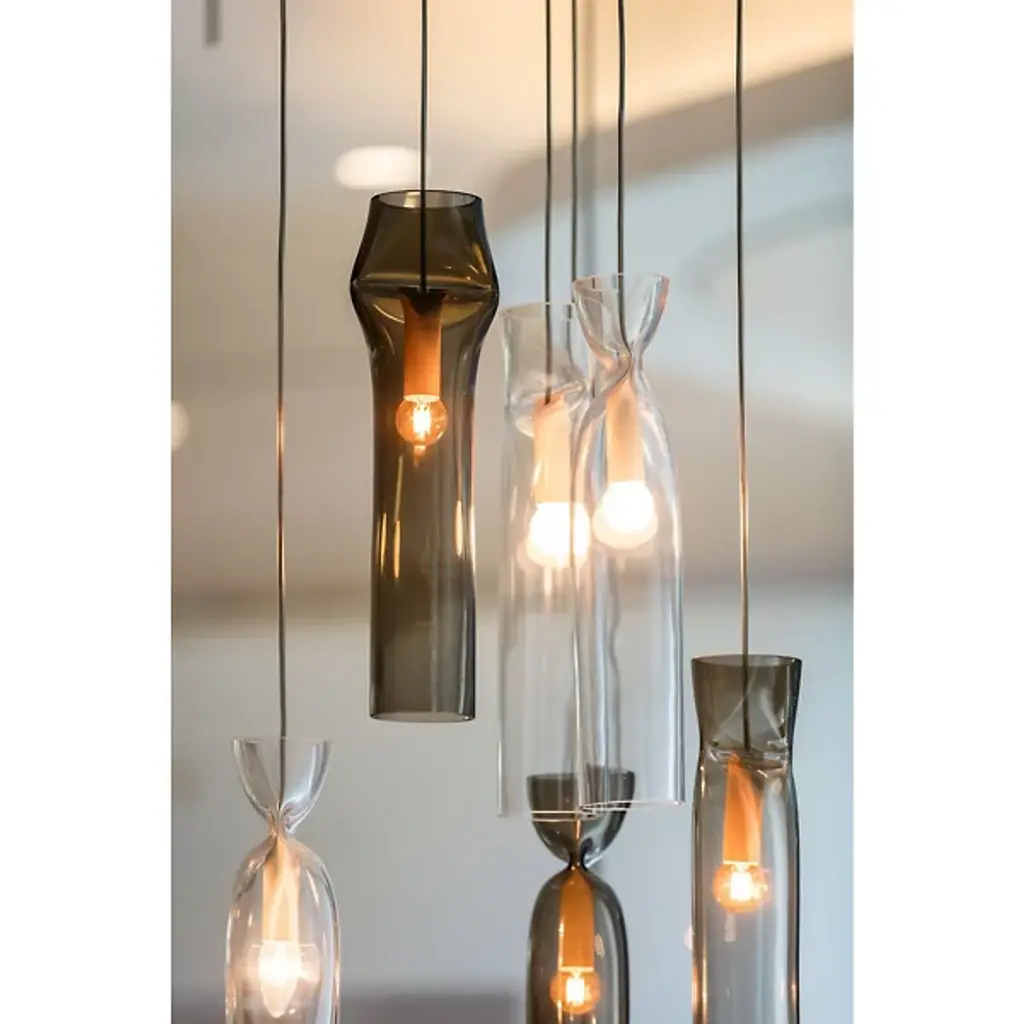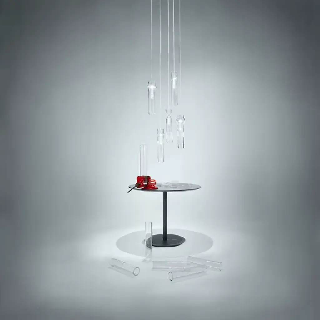 The Press Pendant from Lasvit adds style and substance to interior spaces. Descending from a canopy and cylindrical housing, it uses a long cable to hold potent LED lamping inside a clear glass tube, crimped at the housing’s top, and pressed in at the upper end of the glass. A simple design based on the modern Japanese folk craft (Mingei) movement, it effortlessly enables potent illumination of its surroundings, gentling glare to the side while splashing out a focused spot of light below.