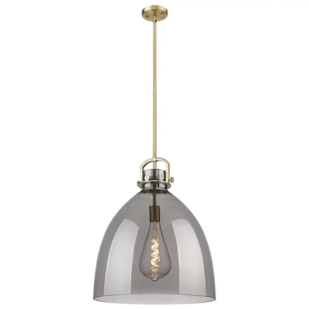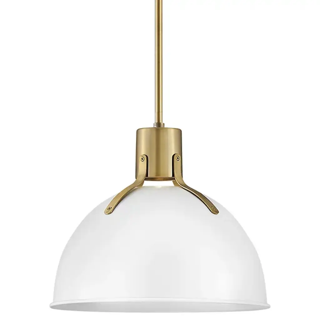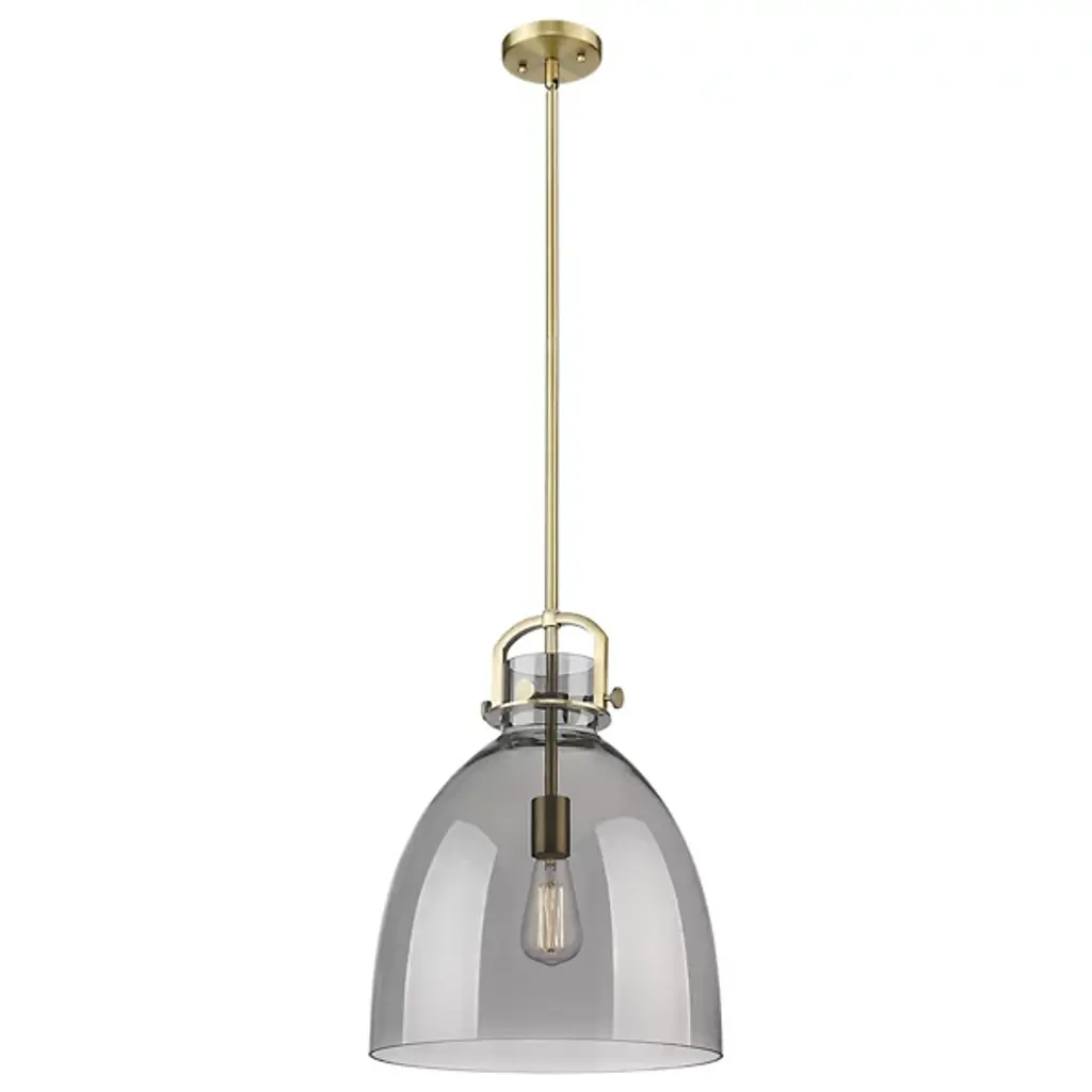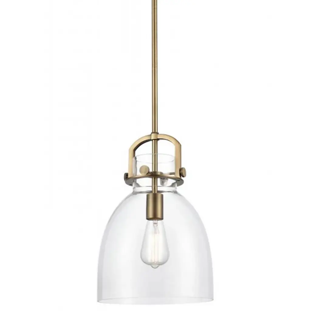 Introducing Preston Arched Frame Glass Dome Pendant by Alder & Ore, the perfect accent for your kitchen or foyer. This pendant features a bell-shaped shade made from quality glass, delicately held by a robust metal frame. Its design borrows inspiration from Industrial, Farmhouse, and Restoration-Vintage styles, blending them into a timeless piece that adds depth and character to your space. The Pendant is designed for hardwired installation and is compatible with incandescent bulbs for versatile lighting options. No matter whether it's a cozy dinette or a busy kitchenette, this pendant elevates the aesthetic of any room that it illuminates.
