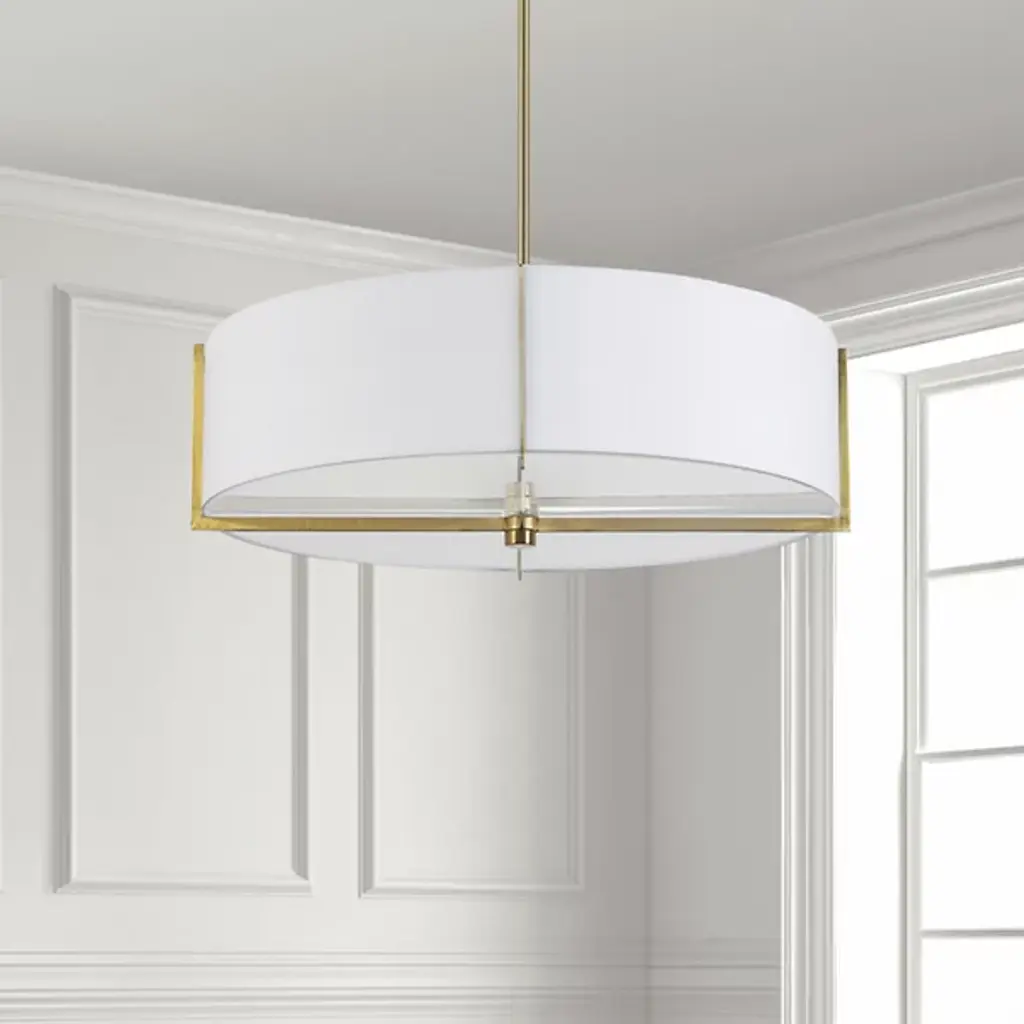 Dainolite presents the Preston Pendant. It features a large, squat drum shade and a frosted glass diffuser with metallic accents for a luxe visual contrast. The look of this piece is pared down yet elegant, allowing for it to elevate an existing design scheme or be placed in a new space to bring it all together.
