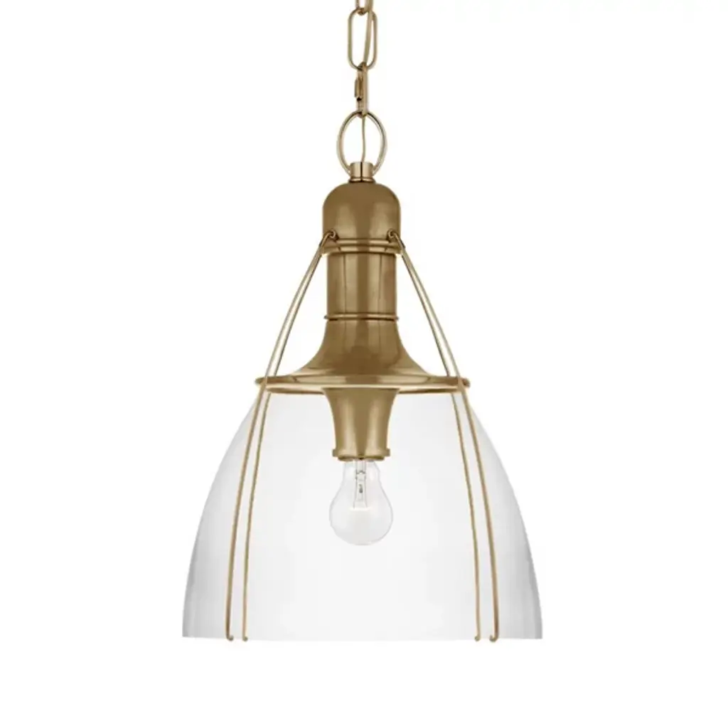 With a graceful, streamlined approach, the Prestwick Pendant from Visual Comfort Signature, formerly known as Visual Comfort, is a shining example of the impressive possibilities of modern lighting. The disc-shaped ceiling mount smoothly rises, extending a chainlink that upholds the soothing, flowing curves of the body. A single, tiny bulb contrasts with the size of the piece as it is gently enclosed in a clear glass shade. Shining a bright and expressive glow, this piece adds visual pleasantry and a relaxed ambiance wherever it is placed.