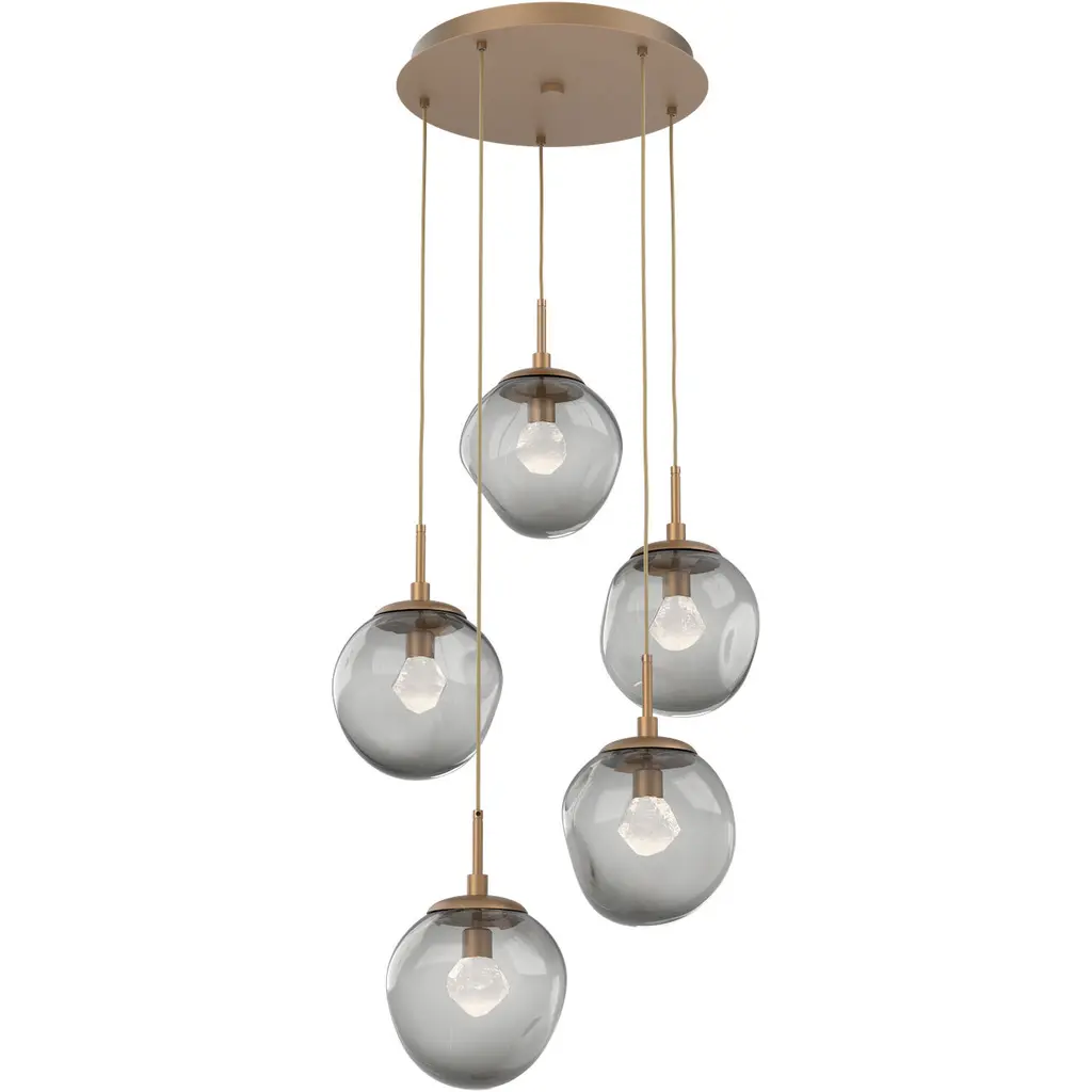 The Primo LED Multi-Light Pendant by Oxygen is a cool, casual, and bright addition to spaces. Supported by a round canopy, a collection of visible bulbs that are suspended by slender wires and held by smooth sockets are surrounded by glass shades. These glass shades surround both the socket and bulb, lending a dynamic, layered look to this design as it casts an even layer of light onto surroundings, creating a welcoming, well-illuminated environment.