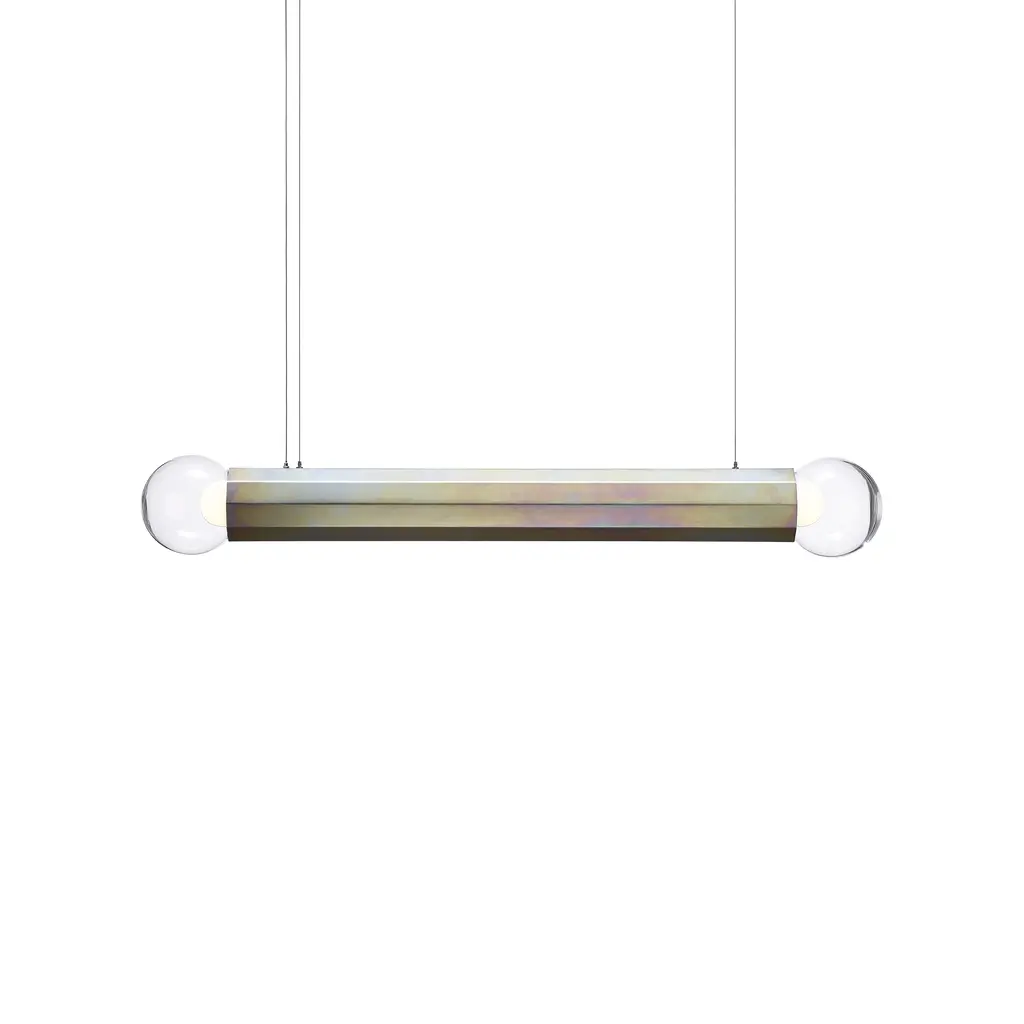 Sleek, linear, and effortlessly architectural, the Prisma Horizontal LED Pendant Light from Brokis is a modern statement suspended in midair. Designed by Lucie Koldova, this minimalist fixture features a handblown glass form with crisp edges and subtle texture, refracting light with a quiet, crystalline elegance. Its integrated LED casts a warm, even glow—perfect over a dining table, kitchen island, or workspace—while the elongated silhouette brings a sense of rhythm and balance to the room. At once understated and artful, Prisma redefines the horizontal plane with luminous precision. Highlights