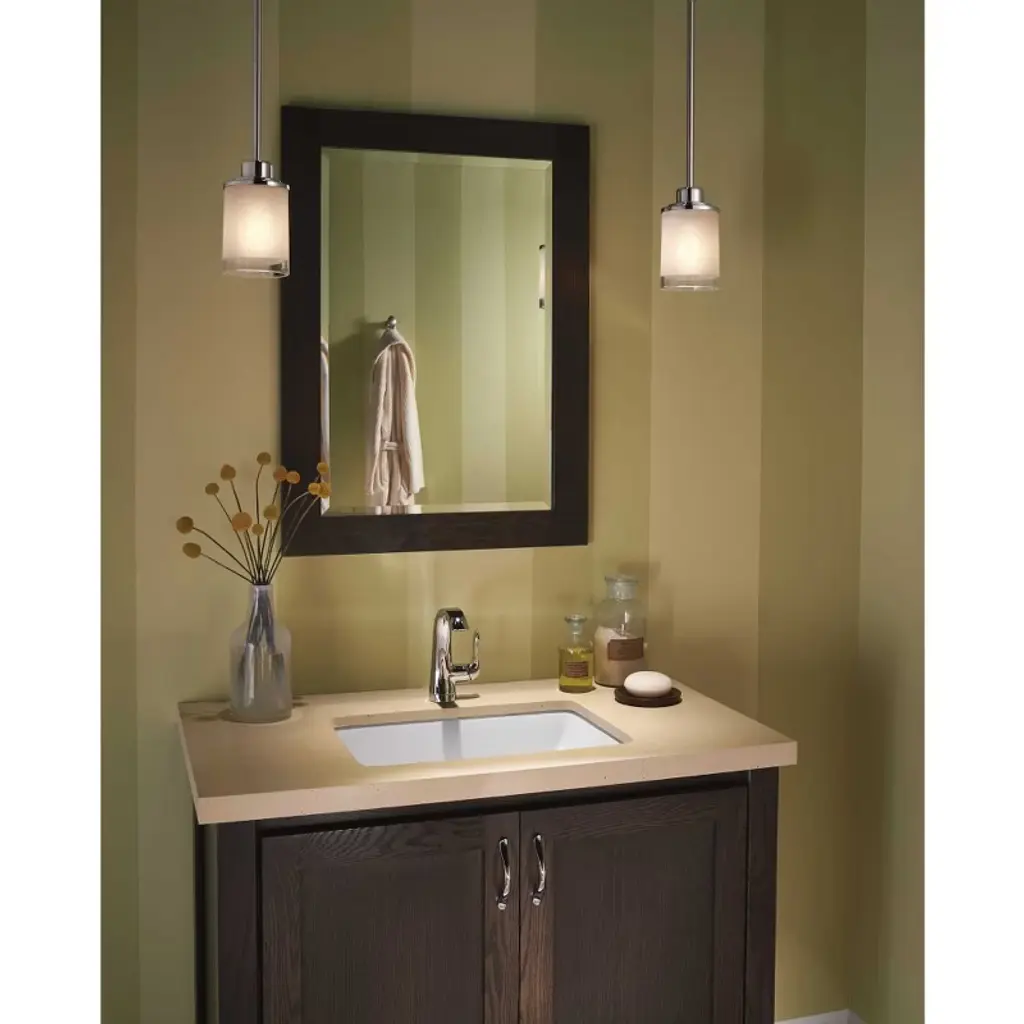 Introducing the Progress Lighting Alexa Collection Mini-Pendant! Crafted from durable steel with an elegant Antique Bronze finish, this mini-pendant exudes timeless charm. The 5.13" width and 7.75" height make it a perfect addition to any space. The incandescent lighting with a 100-watt capacity provides warm and inviting illumination. The white linen finished glass shade is adorned with a crisp, clear edge accent strip, adding a touch of modern sophistication. This mini-pendant is dry rated, making it suitable for indoor use. The package includes a 5.13" diameter canopy, along with rod lengths of 2-6, 1-12, and 2-15 for customizable installation. Elevate your decor with the perfect blend of traditional and modern design elements offered by the Alexa Collection Mini-Pendant from Progress Lighting.