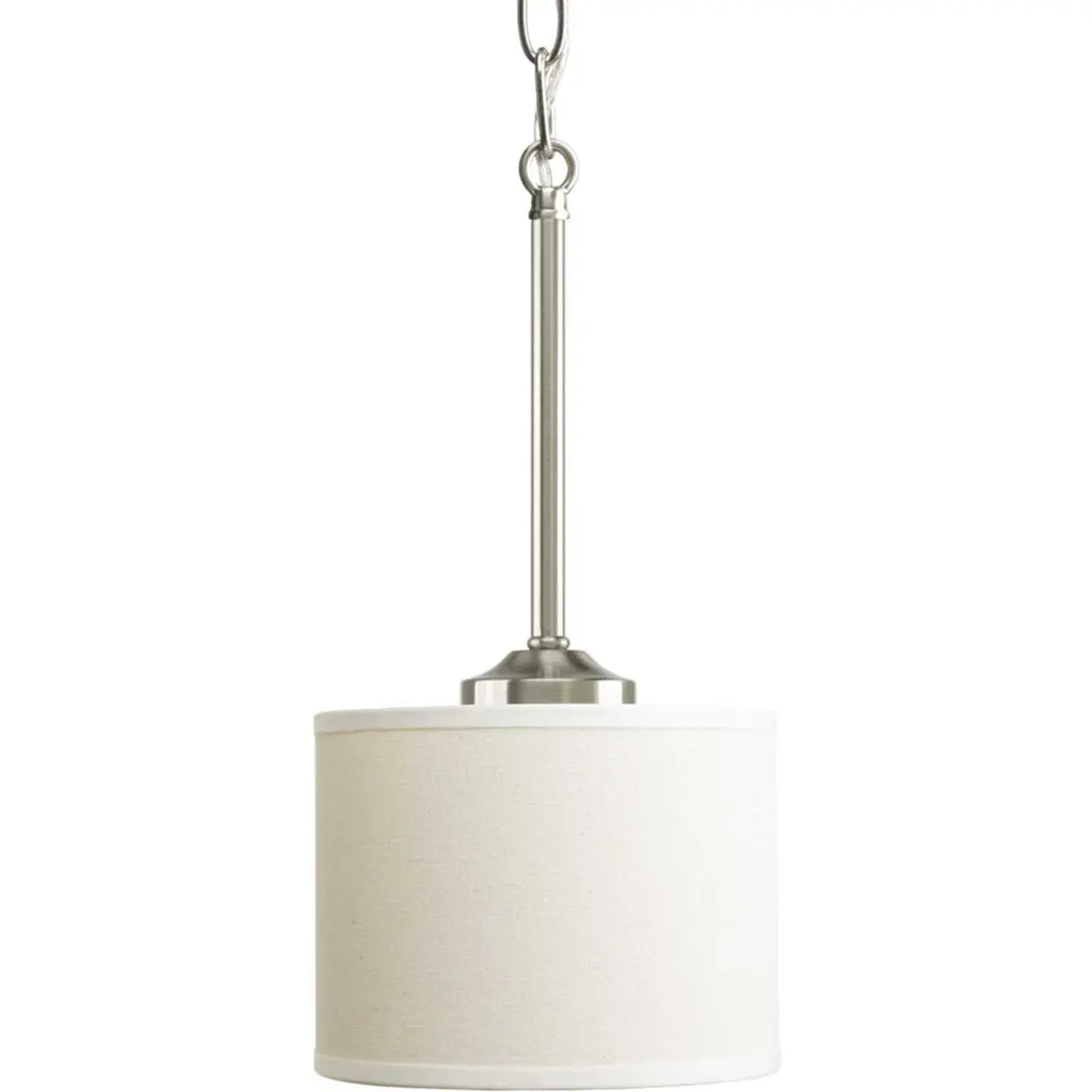 Progress Lighting, Inspire Collection, 1-light Mini-pendant, Brushed Nickel, Off-white Linen Fabric Shade