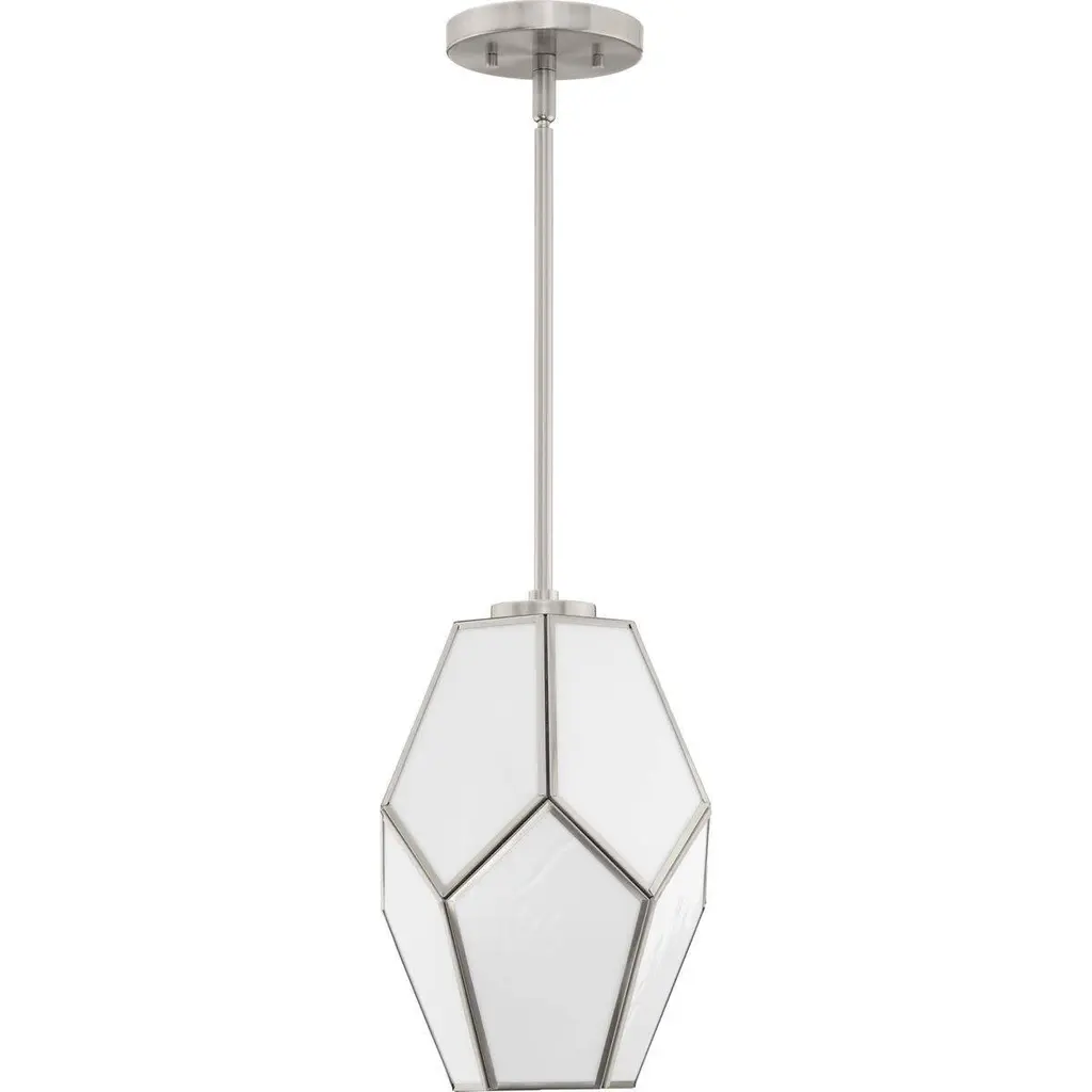 Charmingly distinctive, the Latham Collection glows from within. The Pendant Light is composed of a geometric framework that features an artful array of handmade art glass. Inspired as a modern expression of an origami lantern, the light delivers striking illumination to spaces below.Features:Dimensions:Electrical Specifications: