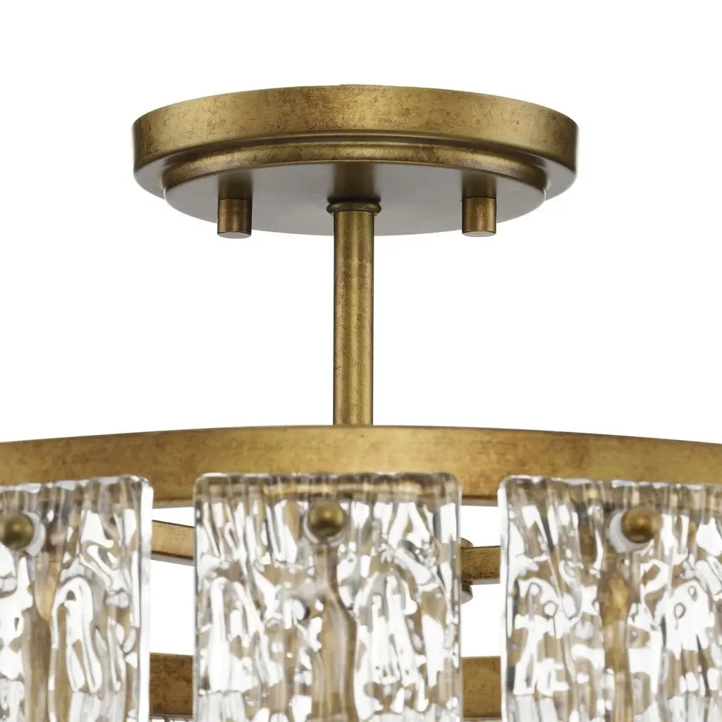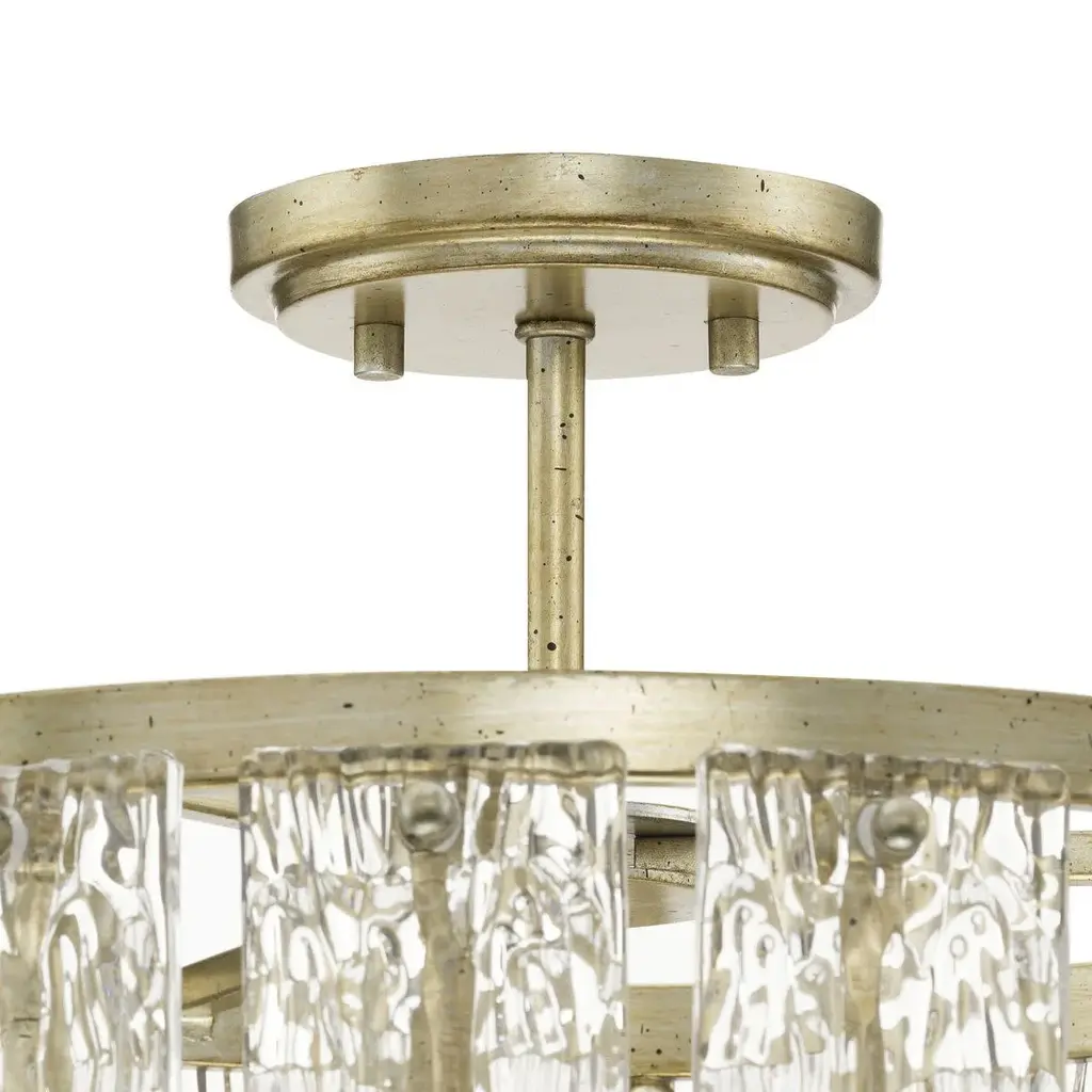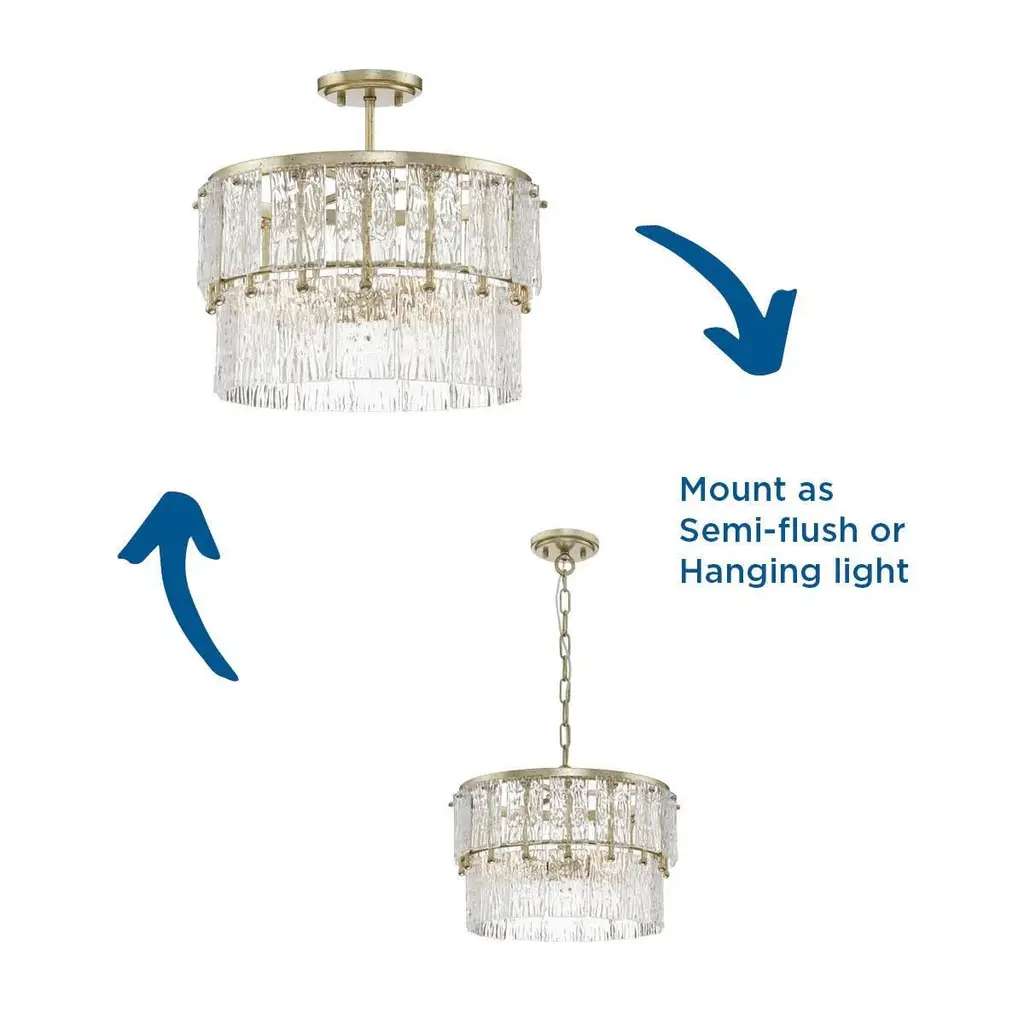 Add glamour to your home with the elegant Chevall Collection. Layers of distinctive artisanal glass encircle a richly burnished frame, creating a pendant that offers a luxurious lighting experience. Glimmering illumination creates a sparkling ambiance that fills the room. This versatile fixture can be mounted to the ceiling as a semi-flush or as a pendant.Features:Dimensions:Electrical Specifications: