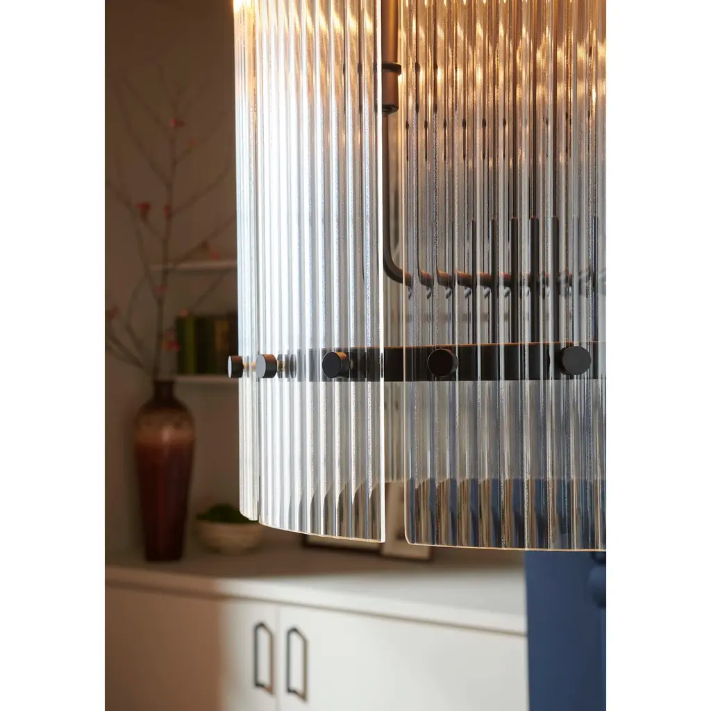 The Seville Collection ensconces light within a translucent design. A series of finely ridged architectural glass elements envelop a finished central frame to diffuse an ambient glow throughout the room. This fixture is part of the Progress Lighting Design Series, a lighting collection offering fashionable styles and luxury lighting for the home.Features:Dimensions:Electrical Specifications: