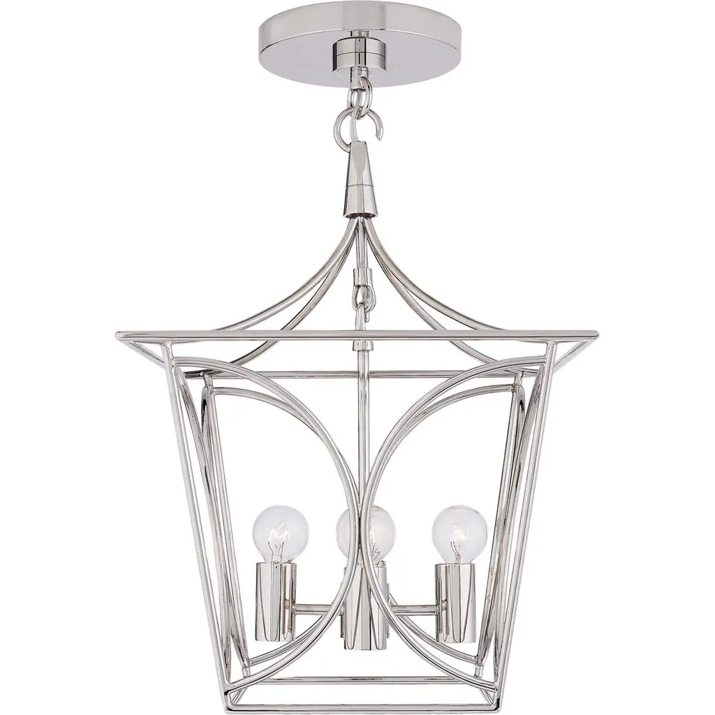 Introducing the Parkhurst Collection from Progress Lighting, featuring a modern twist on a classic design. Crafted from durable steel with a sleek brushed nickel finish, this pendant light measures 10.88" in width, 19.75" in height, and 10.88" in length. It comes with a 72" chain and is designed for incandescent bulbs with a wattage of 60 watts. With a dry rating for moisture, this light is perfect for indoor use. The lantern-style frame creates an airy structure, allowing ambient light to illuminate the space below. Simple light bases inside the frame offer a warm and inviting glow. Assembly is required, and a canopy with a diameter of 5.69" is included. Elevate your home with the timeless elegance of the Parkhurst Collection.