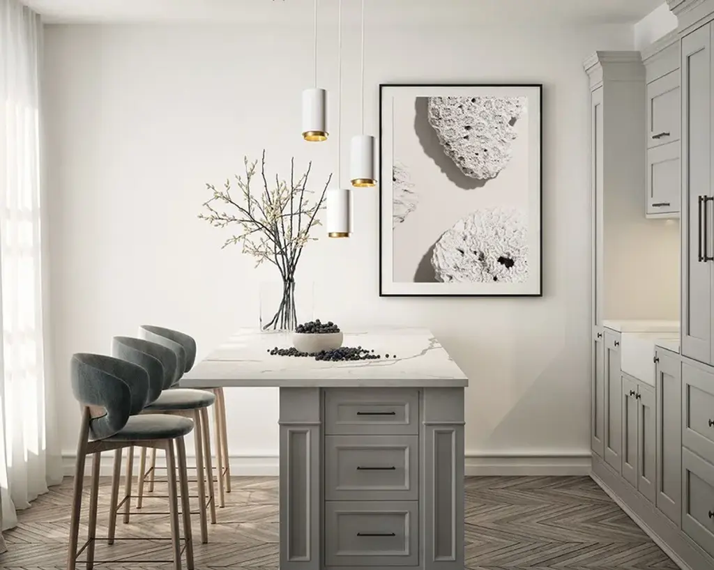 Propilei is a pendant lamp made of plaster with a metal ring. Available in matte black, matte white, brushed brass, and brushed copper finishes. Equipped with a GU10 socket.