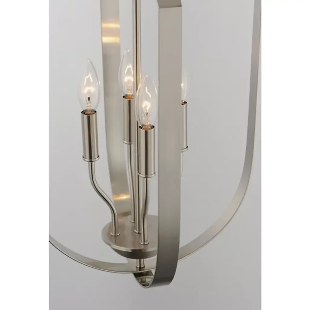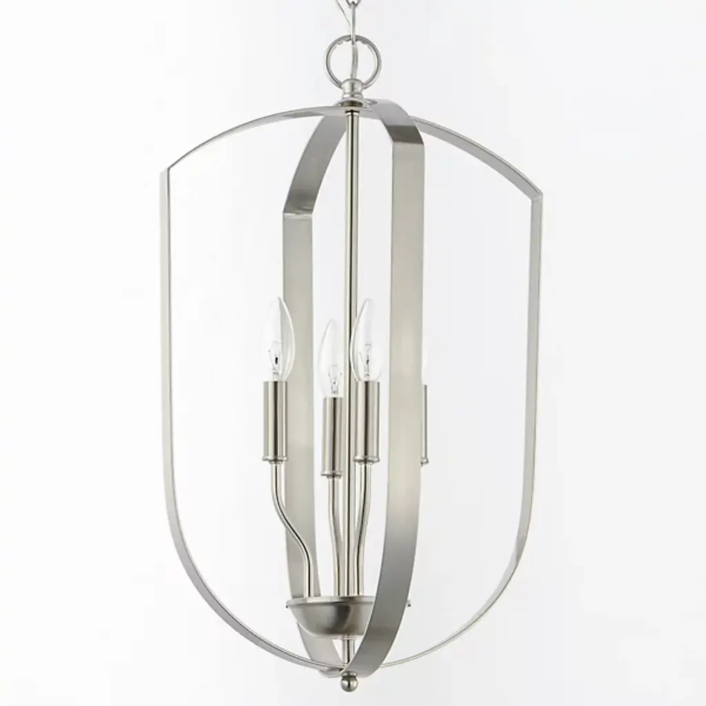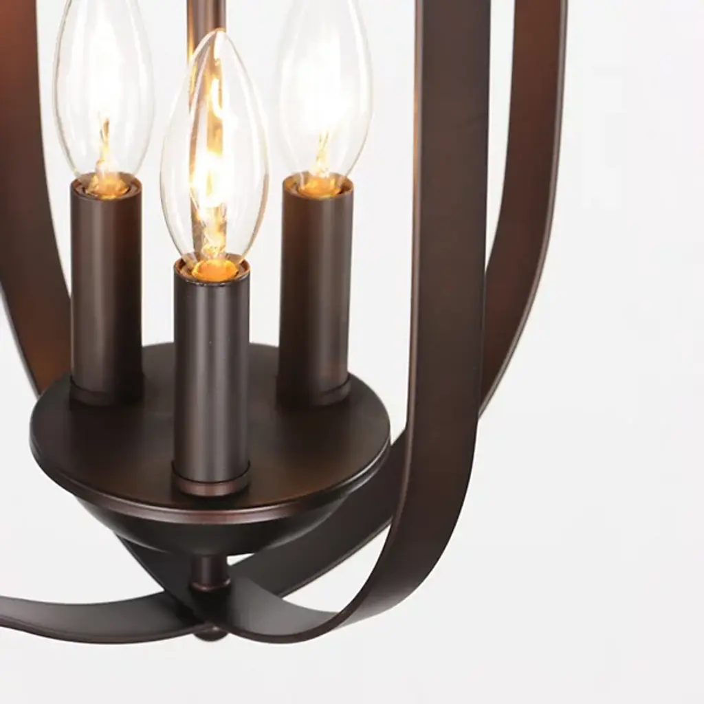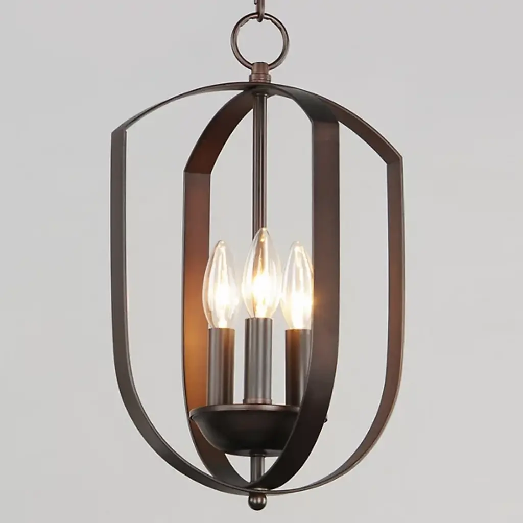 The Provident Pendant by Maxim Lighting is a handsome, airy design. Suspended from a round canopy by a linked chain, a decorative loop tops an openly styled frame made from slender metal bands that are gracefully curved, surrounding a set of exposed candelabras. A lovely finish dresses up the simple and sleek silhouette of this pendant as the lights within shine freely onto surroundings, offering spaces a bright, beautiful touch.