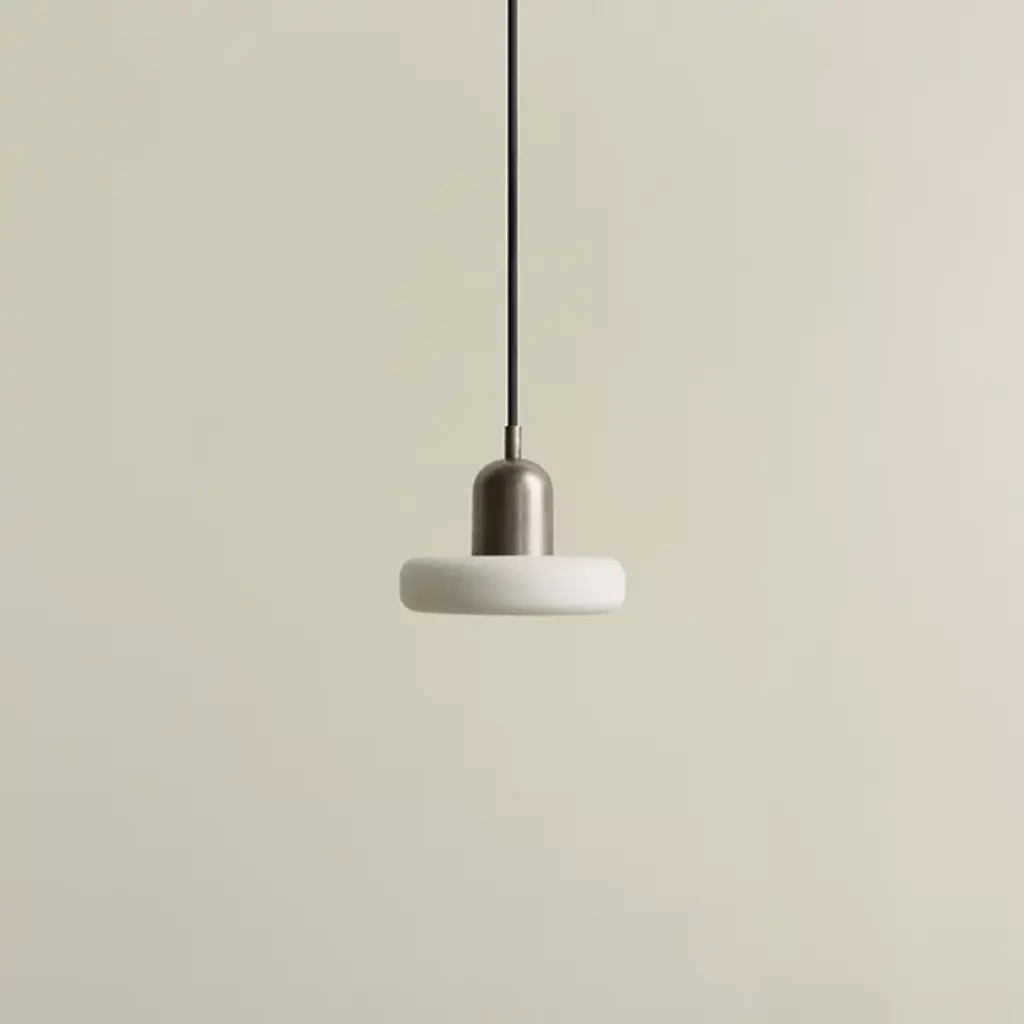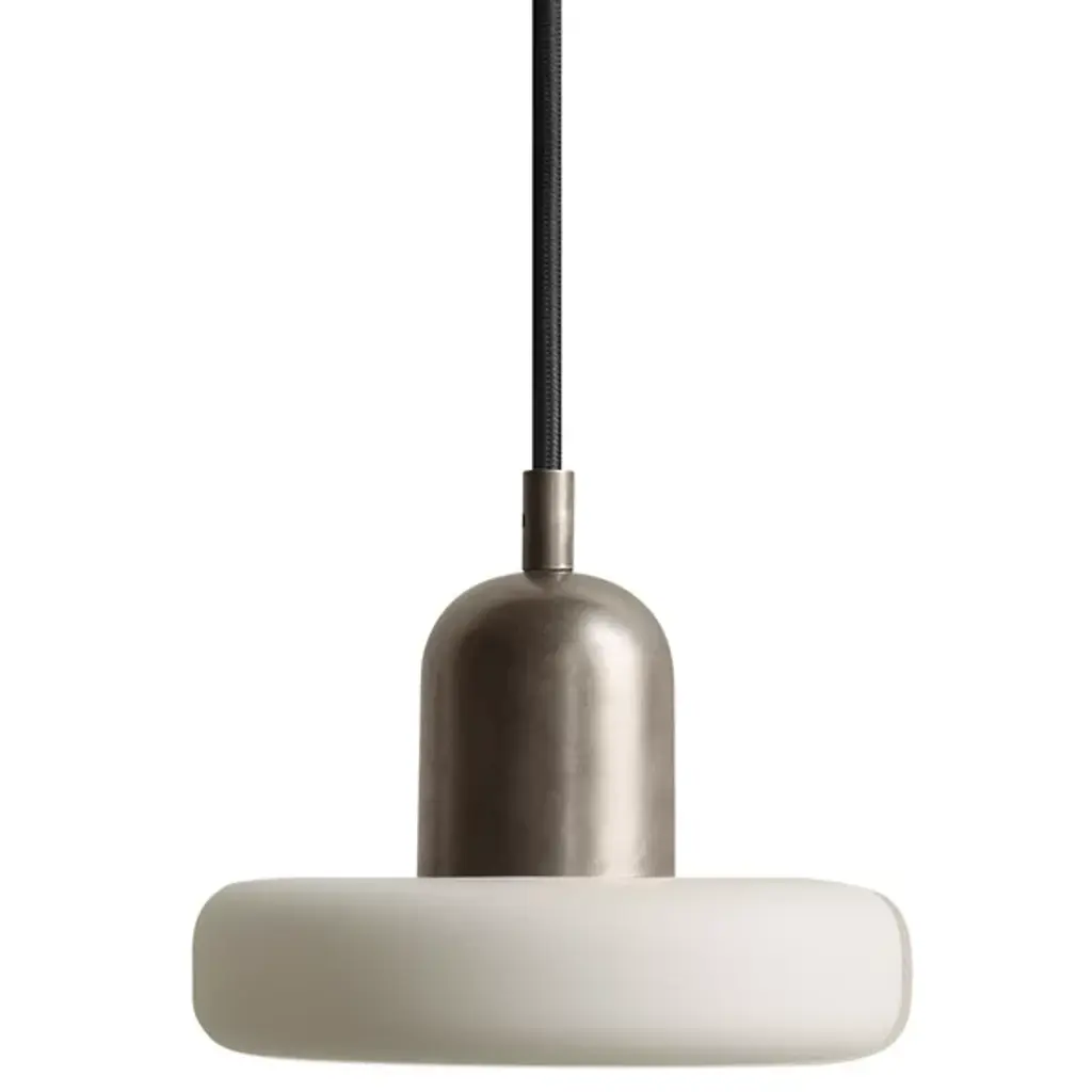 The Puck Outdoor Mini Pendant from In Common With is appropriately named, as its defining feature is its puck-shaped shade composed of exquisite hand-blown glass. The puck is crowned by a dome that gives a contemporary element to this artisanal modern fixture. It is composed of durable steel or brass, allowing the mini pendant to withstand the elements. This sloped-ceiling adaptable lighting solution is illuminated by an LED that can be dimmed using a separately sold TRIAC dimmer.
