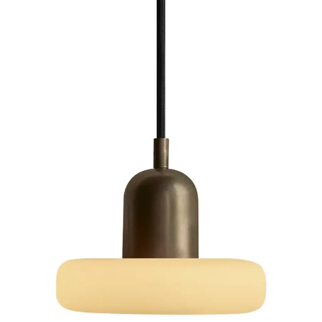 The Puck Outdoor Mini Pendant from In Common With is appropriately named, as its defining feature is its puck-shaped shade composed of exquisite hand-blown glass. The puck is crowned by a dome that gives a contemporary element to this artisanal modern fixture. It is composed of durable steel or brass, allowing the mini pendant to withstand the elements. This sloped-ceiling adaptable lighting solution is illuminated by an LED that can be dimmed using a separately sold TRIAC dimmer.