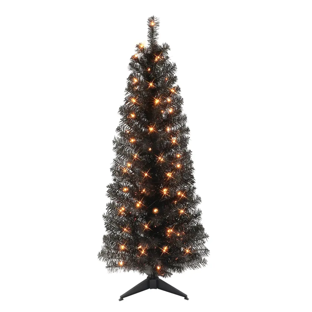 Puleo International 4.5 Ft. Pre-Lit Black Tinsel Tree - 4.5 Foot