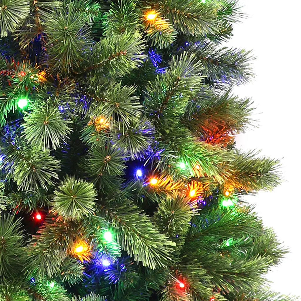 Embrace the joy of the holiday season into your home with the Puleo International Pre-Lit Montana Fir Artificial Christmas Tree. This 6-foot tall artificial holiday tree with verdant green pine needles and an elegant conical shape perfectly captures the ambiance of the wintry forests in your home. Decorated with 250 pre-attached Color-Select LED lights, this pre-lit tree illuminates your home with a colorful festive glow through foot pedal activation and a UL listed adaptor while eliminating the time-consuming hassle of hanging lights around your tree. This artificial Galveston fir tree has a full appearance with a total of 669 PVC branch tips and gorgeous life-like branches that stimulate a realistic feel of nature's beauty. Assembly is simple and quick with easy to hinge branches, and a metal stand is included for convenient placement anywhere in your home. The flame-retardant, hypoallergenic, and needle-shed resistant tree offers a safer alternative to fresh-cut Christmas trees, so you can welcome in friends and family for holiday celebrations without worry. This product is backed by a five-year warranty on the tree and a two-year warranty on the lights for years of quality use. Features: 6' LIFELIKE CHRISTMAS TREE: 669 PVC life-like pine needle branches create the natural look of a real Montana Pine Christmas Tree for a timeless holiday accessory PRE-ATTACHED LED LIGHTS: 250 Dual Color LED lights illuminate your home through foot pedal activation and a UL listed adaptor, eliminating the time and effort of hanging lights on your tree. You can choose Multi-Color or Clear lights thru the flip of a switch. REALISTIC APPEARANCE: Features verdant green pine needles and an elegant shape that perfectly capture the ambiance of the wintry forests in your home EASY SET UP AND DISPLAY: Assembly is simple with hinged branches and included metal stand for easy and convenient placement throughout the home SAFER FRESH-CUT TREE ALTERNATIVE: Flame-retardant, hypoallergenic, and needle-shed resistant so you can welcome in friends and family for the holidays without worry FAMILY-OWNED COMPANY: Christmas is all about family, and so is Puleo International. As the Oldest Name for Christmas Trees in America, Puleo is a 4th generation family-owned manufacturer and distributor of high quality, hand-crafted artificial Christmas trees and home décor. With a long and rich history dedicated to producing beautifully designed artificial Christmas trees and home decor items, the Puleo family and its dedicated team of employees continues to deliver exceptional products of the highest quality and craftsmanship. This has enabled us to serve families like yours for more than 65 years and counting.