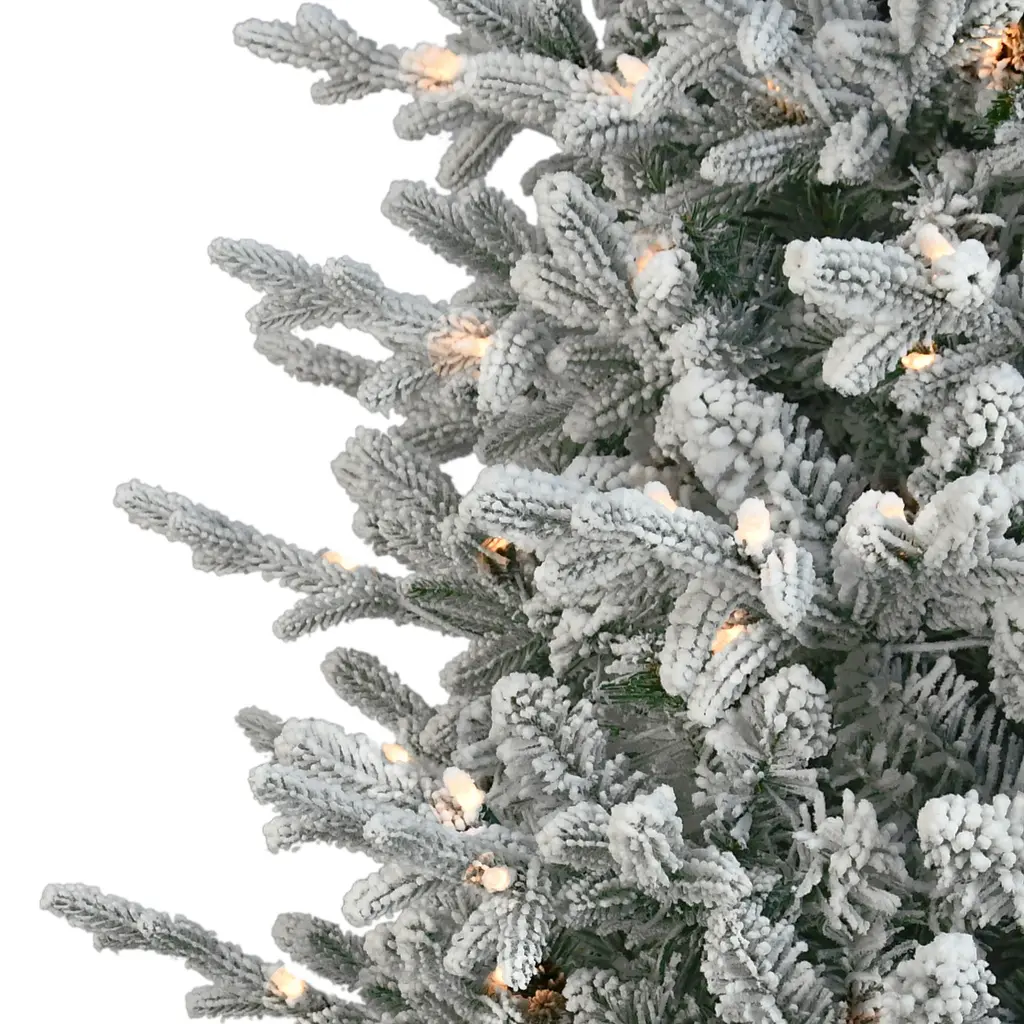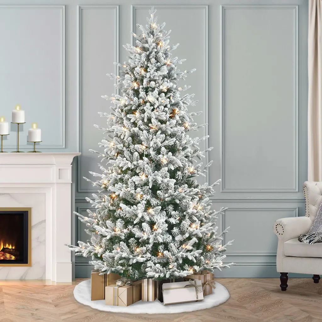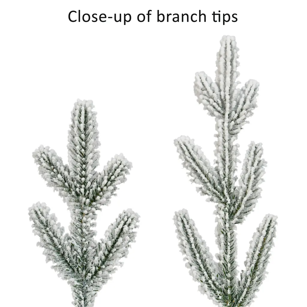 Embrace the joy of the holiday season into your home with the Puleo International Pre-Lit Flocked Boulderwood Spruce Artificial Christmas Tree. This 7.5-foot tall artificial holiday tree with elegant pine needles that have a realistic look and feel. Decorated with 500 pre-attached UL-Listed clear incandescent lights, this pre-lit tree illuminates your home with a festive glow while eliminating the time-consuming hassle of hanging lights around your tree. The Boulderwood Spruce tree has a slender and natural appearance with a total of 2477 branch tips, gorgeous life-like branches, and a classic shape for an authentic wintry forest impression. Assembly is simple and quick with easy to hinge branches, and a metal stand is included for convenient placement anywhere in your home. The hypoallergenic and needle-shed resistant tree offers a safer alternative to fresh-cut Christmas trees, so you can welcome in friends and family for holiday celebrations without worry. This product is backed by a five-year warranty on the tree and a two-year warranty on the lights for years of quality use. Features: