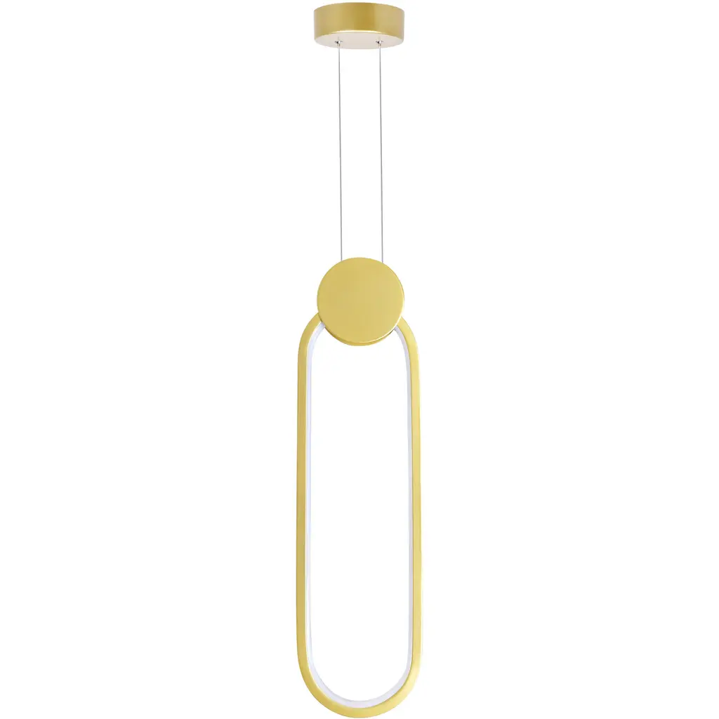 Sleek and refined, the Pulley Oval Integrated LED Mini Pendant in satin gold adds a touch of elegance to any modern interior. Its minimalist silhouette, clean lines, and monochromatic finish create a polished look, while the soft curves of the oval and circle metal elements introduce subtle warmth and movement. Perfect for contemporary spaces, this fixture brings sophistication without overwhelming your decor.