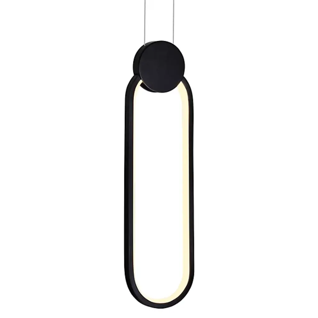 Illuminate your home with the Pulley Oval LED Mini Pendant by CWI Lighting. This clean and memorable design isn't just a light fixture; it's a striking piece of inspired simplicity. Install it in unexpected places for a bold statement. The circular canopy and parallel cables support a central hub, which encircles a vertical oval housing LED lamping. With its unique character, this pendant complements both Contemporary and Art Deco styles, making it the perfect choice for those who appreciate modern design and elegance in their lighting.