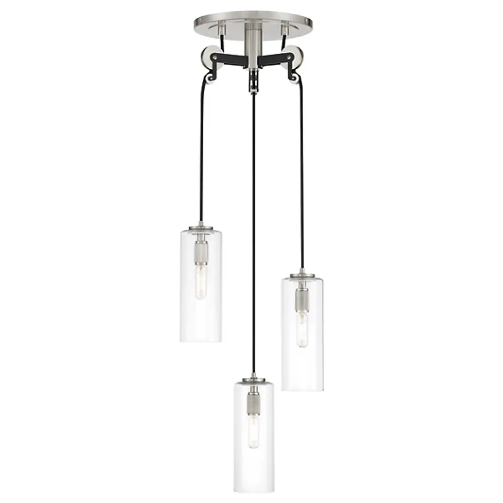 Pull the eyes in with the elegant, mechanical design of the Pullman Junction Multi Light Pendant from Minka-Lavery. This piece pays homage to the pulley system with industrial and modern features. Here, a group of bold pulleys drop fine cord that’s height adjustable. Lamp holders seduce below with a familiar knurled textured surface. Clear glass shades up the refined look of the piece. Light glazes the glass, softens outwards and casts directly below.
