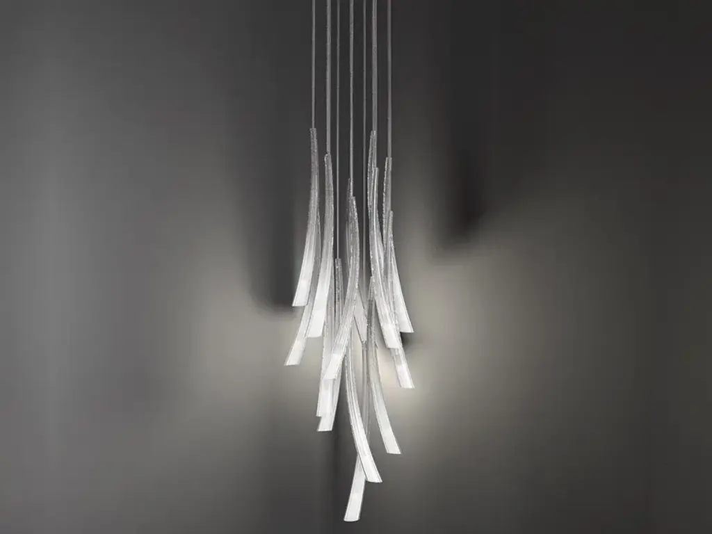 Pulsa is a pendant lamp with direct light and is part of the homonymous collection designed by Danilo De Rossi for Italamp. Available in 5, 10 or 15 lights with white, dove or amethyst glass, and metal frame with iron grey or chrome finish.Electrical and technical characteristics439/S5 -Ø38 cmLED: 5x2,5w - G9Eco Halogen: 5x20w - G9439/S10 -Ø38 cmLED: 10x2,5w - G9Eco Alogena: 10x20w - G9439/S15 - Ø50 cmLED: 15x2,5w - G9Eco Halogen: 15x20w - G9Driver: included, not dimmable (on request dimmable with TRIAC and Casambi bluetooth)Voltage:230 VEnergy class: A++ > A / C> EIP20Certifications: CE/EACAn expressive choice, which recovers the dexterity of classic glassworks, with a deliberate interpretation more modern. The Pulsa collection offers an elegant look that will add an ornamental touch to the rooms, with long shades of fluted blown glass. Pulsa is available both in the wall version and as a pendant lamp.