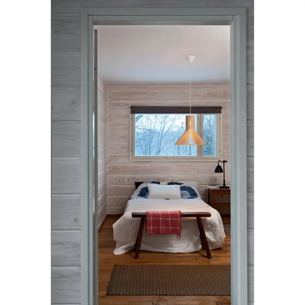 Puncto 4203 pendant lamp by Secto Design is designed especially for low spaces and is particularly well suited above a dining table, for instance. Thanks to the wide lower end of the shade, the lamp gives off a broad light beam. Secto Design luminaires are handmade in Finland from form-pressed Finnish birch. The lamps have clean Scandinavian silhouettes, and the wooden surface gives them a warm and appealing character. Secto lamps are designed by architect Seppo Koho who wanted to develop a softly filtering light that doesn’t dazzle but invites people to come closer. Secto lamps emphasize space and environment by creating a unique atmosphere and feeling of closeness.