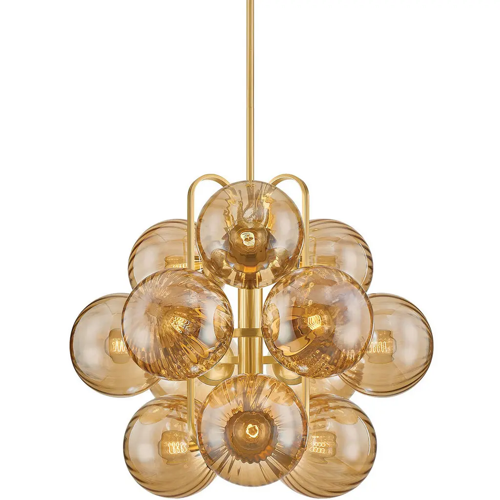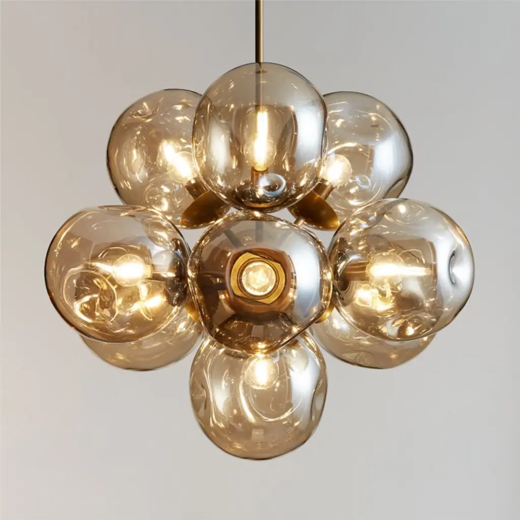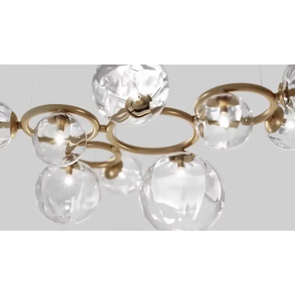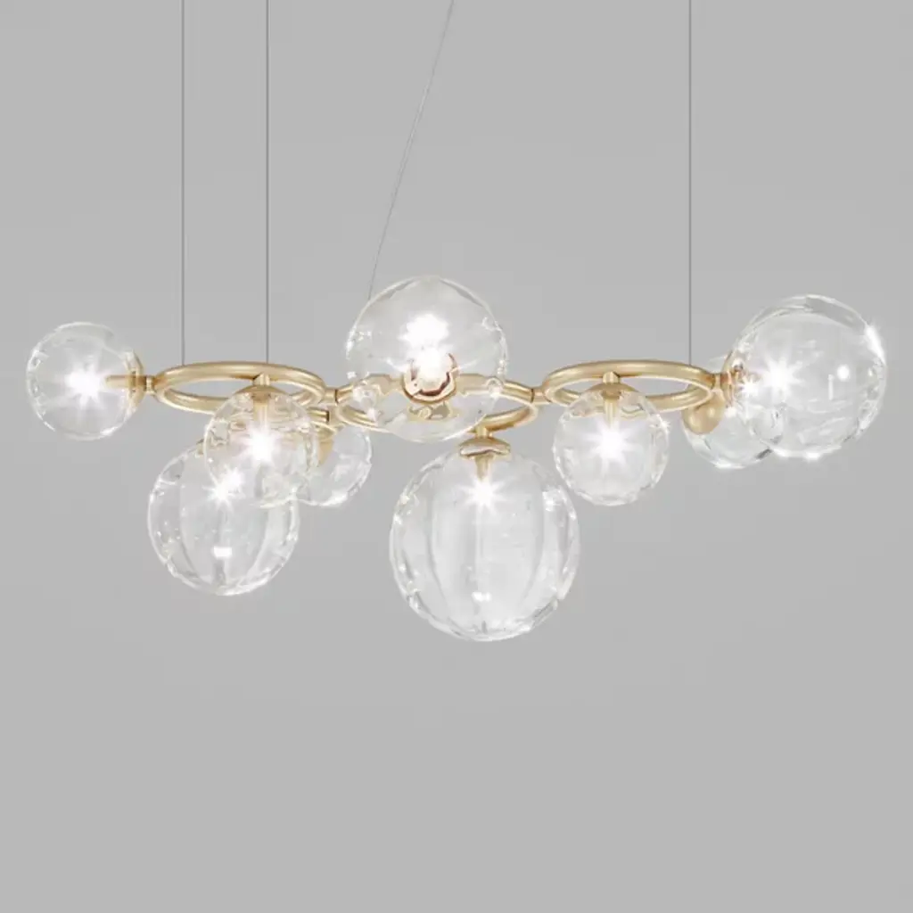 The Puppet Ring Pendant from Vistosi keeps the eye moving with a dynamic composition of handcrafted shapes like the sight of a mesmerizing puppet show. This pendant’s curved shapes are a reference to designs of the 60s. The minimalist quality of the shapes underscores designer Romani Saccani Architetti Associati’s idea that simplicity is at the core of elegance. Like a puppet master's strings, the pendant’s suspension appears near invisible to put focus on the subject. A metal ring frame serves as the anchor point for the sculptural arrangement of glass. Each handblown glass globe invites a detailed look as they carry a flowy surface texture. The multi-directional globes pair with the brilliant bulbs to create a warm aura and a memorable silhouette.