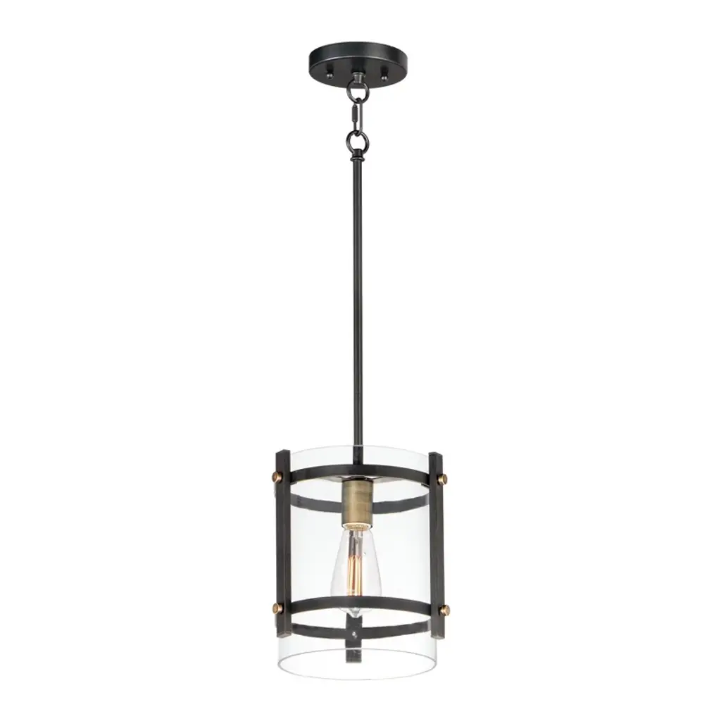 A sleek and smooth modern piece, the Pylon Pendant from Quorum International uses a combination of metal and long, clear panels to create a bold silhouette in your home. Perfect for industrial or farmhouse-styled spaces, this pendant consists of a single bulb gently enclosed within a softly angled, geometric body. A chainlink and downrod pairing lower it into your home, allowing the light to shine bright and free around the room.