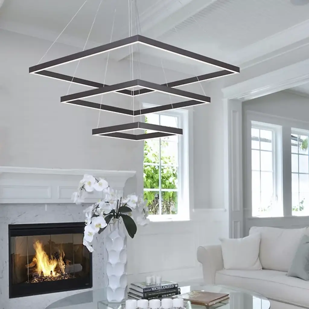 The ET2 Lighting Quad 3 Tier LED Pendant is a modern and innovative fixture that is powered by energy efficient LED lighting. Three tiers of extruded aluminum frames host strips of LED modules underneath, providing ample lighting for any living space. This fixture is fully adjustable and customizable, complete with adjustable connectors that allow for infinite compositions.