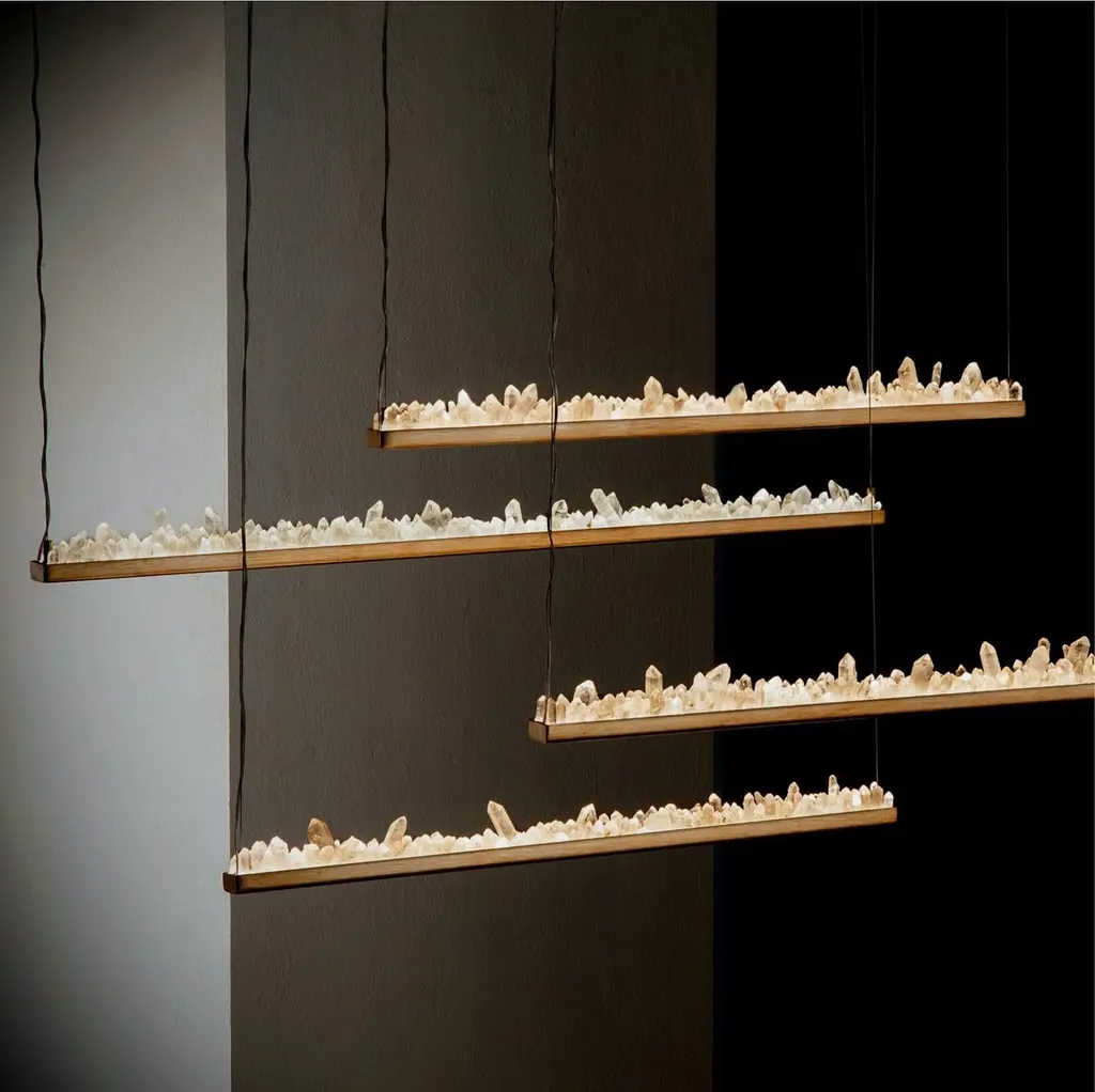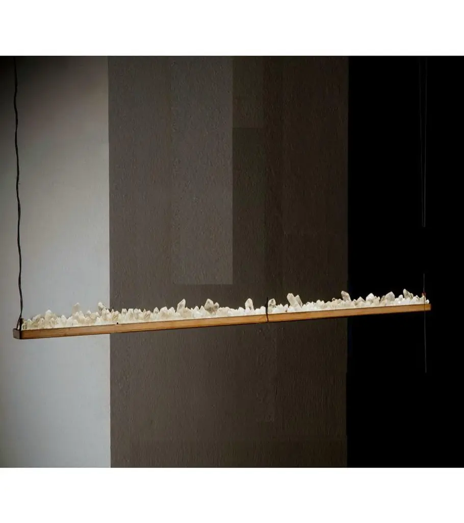 Quartz horizontal 120 pendant lamp by Aver Signed by Waldir JuniorDimensions: D 5 x W 124 x H 8 cm Materials: Aluminum, antique Bronze finish. Natural White Quartz and Smoky Quartz.Lighting: 01 x 20W LED 1600 lumens.Finish: Silver Veneer, Aged Silver Veneer, Gold Veneer, Aged Gold Veneer, Copper Veneer, Aged Copper Veneer, Aged Gold Patina, Antique Patina.Also available in size 90 cm. All our lamps can be wired according to each country. If sold to the USA it will be wired for the USA for instance.New collection of lamps was signed by Waldir Junior for Aver Metais. The Carbonite line is characterized by its geometric design with striking lighting through natural quartz druses. Price with canopy for plaster lining. Source not included, purchase separately.The history of Aver Metais as a lighting brand begins with Jefferson Aver manufacturing lamps in a completely handcrafted way and with very few resources in the family business. Over the years, the brand has grown and gained recognition. Today, our products are present in several projects by prestigious professionals, in addition to being resold in lighting boutiques in different regions of Brazil. Through its partners, Aver Metais has several participations in important design and architecture exhibitions. In 2015 the company started its internationalization process and today has clients and projects carried out in places like New York, Los Angeles, Chicago, Dallas, Miami, London, Cardiff, Hamburg, Manila, Santa Cruz de la Sierra, and Lima, attesting to the level quality and competitiveness of Aver Metais products.In our factory, each piece is meticulously produced using modern production processes combined with craftsmanship to detail. The result is original pieces that, more than illuminate, are jewels for your home. Over the years, the brand has been dedicated to creating and producing original and high-quality decorative lighting fixtures that can fit into the most varied and demanding interior architecture projects.