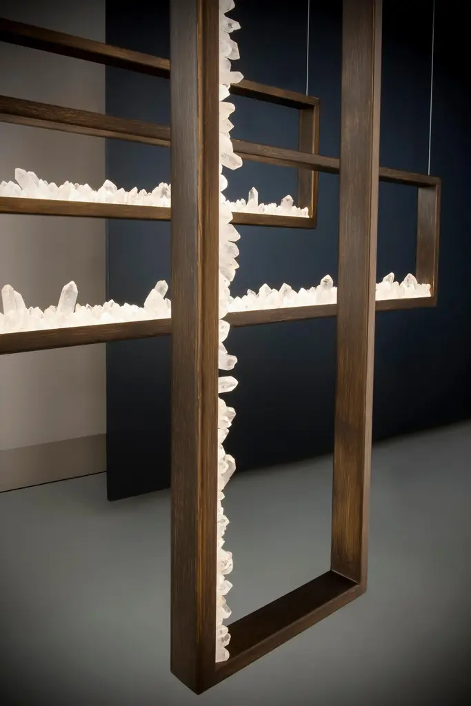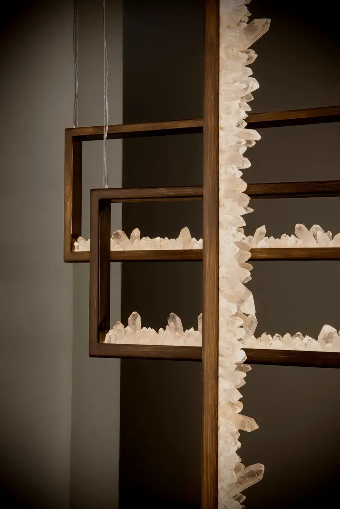 Quartz pendant lamp by Aver Dimensions: 30 x 5 x 94 cmMaterials: white quartz, silver leaf, gold leaf, brass leaf, copper leaf, pink gold leaf.Lightning: 01 x LED 15 W 1600 LM.Designed by Waldir Junior.