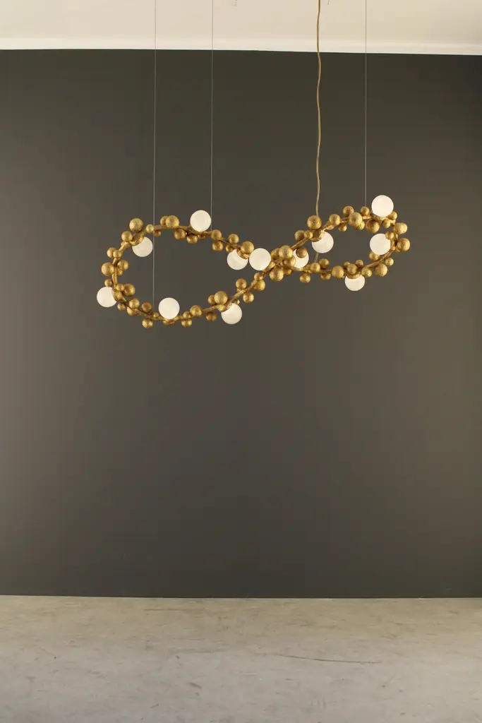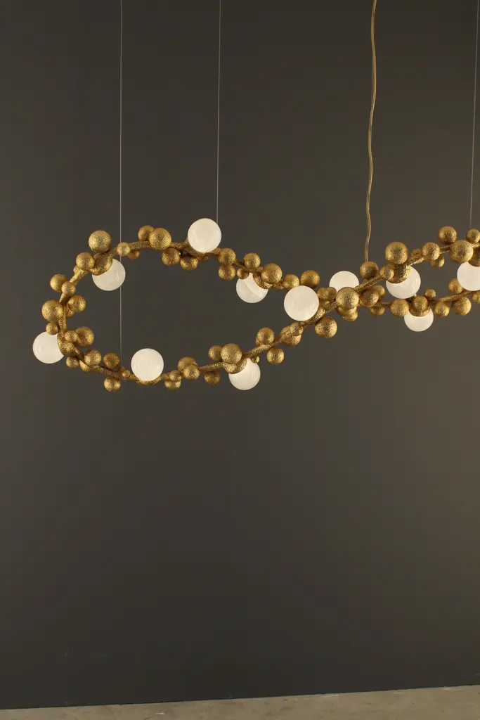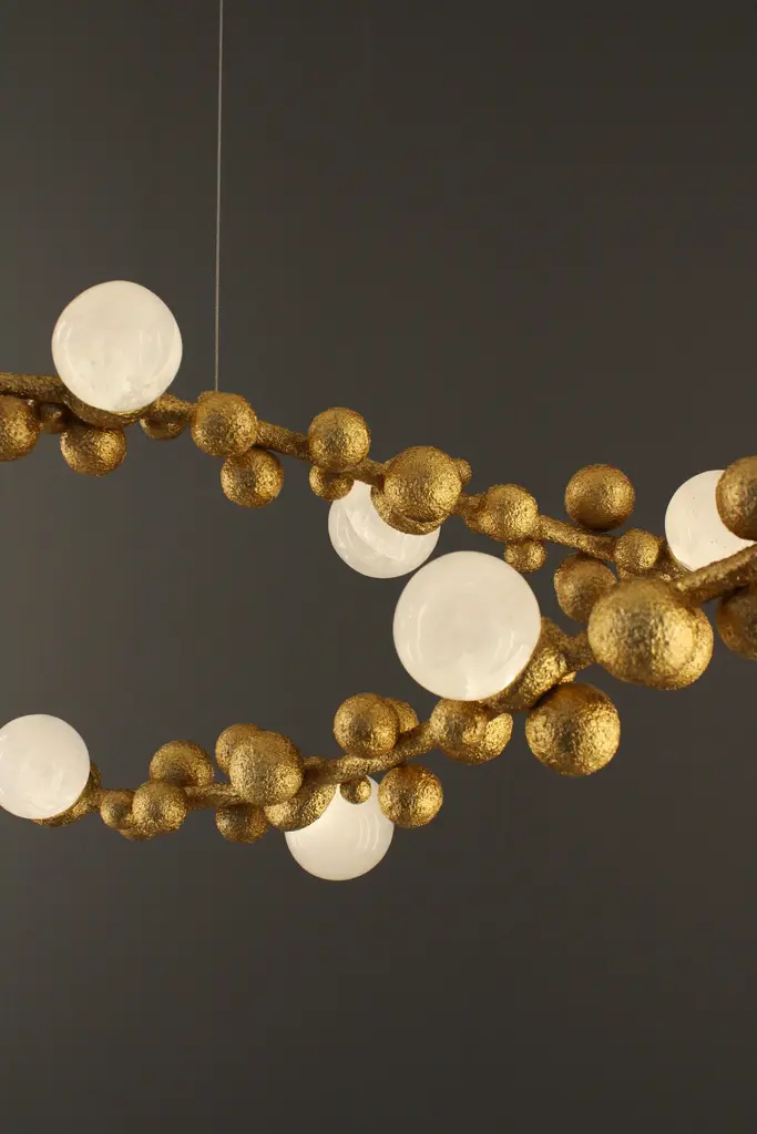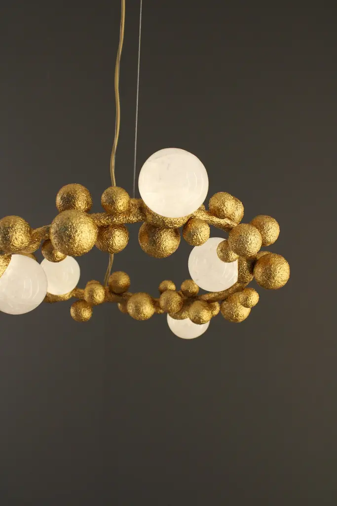 Quartz Pendant Lamp I by AverDimensions: D 45 x W 117 x H 33 cm Materials: Natural white quartz, metal, ceramic.Available in Gold Plated, Silver Plated, Aged Gold Plated, Aged Silver Plated, Aged Gold Patina, Antique Patina, Matte Black, Vintage Gold, Rustic Silver, or Rustic Bronze. All our lamps can be wired according to each country. If sold to the USA it will be wired for the USA for instance.An unusual and provocative collection of lighting fixtures that aims to use quartz spheres to create an elegant and unconventional design.The history of Aver Metais as a lighting brand begins with Jefferson Aver manufacturing lamps in a completely handcrafted way and with very few resources in the family business. Over the years, the brand has grown and gained recognition. Today, our products are present in several projects by prestigious professionals, in addition to being resold in lighting boutiques in different regions of Brazil. Through its partners, Aver Metais has several participations in important design and architecture exhibitions. In 2015 the company started its internationalization process and today has clients and projects carried out in places like New York, Los Angeles, Chicago, Dallas, Miami, London, Cardiff, Hamburg, Manila, Santa Cruz de la Sierra, and Lima, attesting to the level quality and competitiveness of Aver Metais products.In our factory, each piece is meticulously produced using modern production processes combined with craftsmanship to detail. The result is original pieces that, more than illuminate, are jewels for your home. Over the years, the brand has been dedicated to creating and producing original and high-quality decorative lighting fixtures that can fit into the most varied and demanding interior architecture projects.