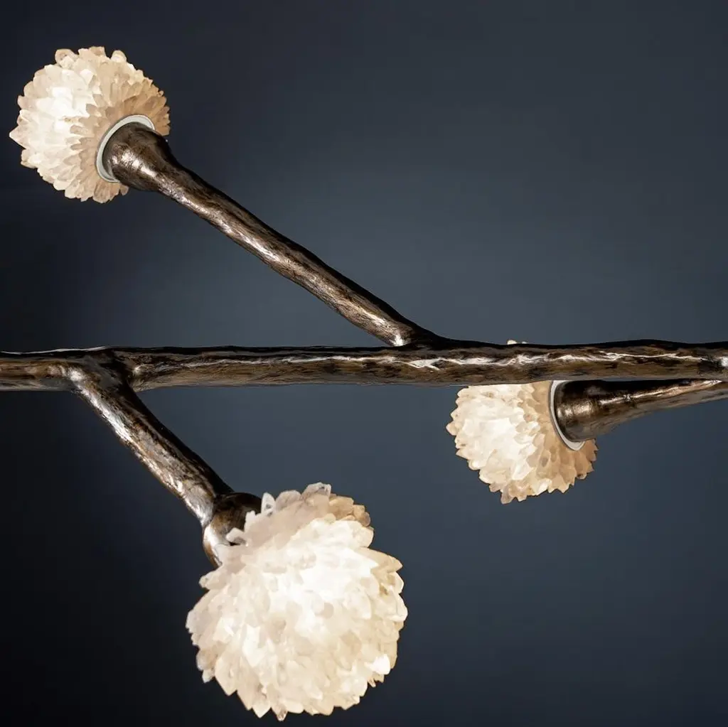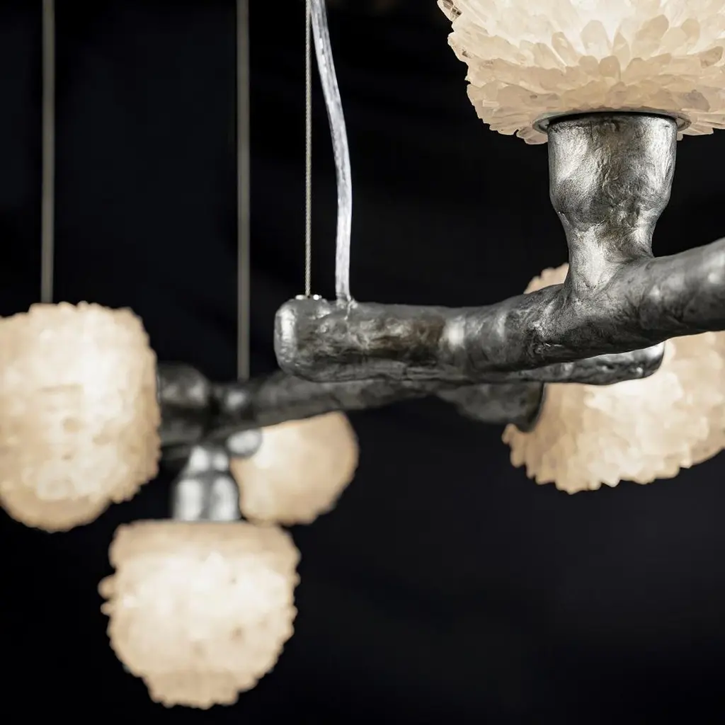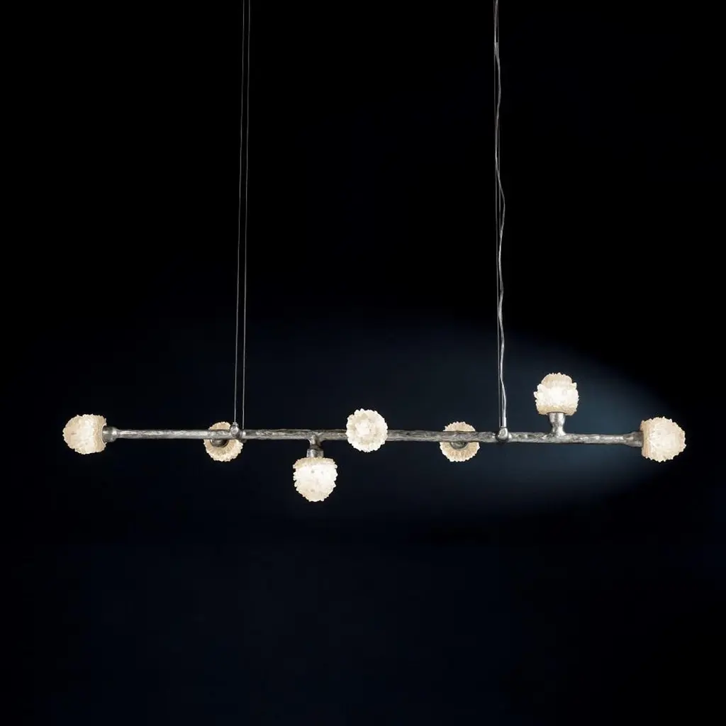Quartz pendant light II by AverDimensions: W 184 x D 35 x H 30 cmMaterials: Natural rocks, high-quality cut crystals, jewelry chains, hand blown glass, other.Also available: Matte black, rustic silver, oxidized graphite, and rustic bronze.A series of lamps molded in a lively, imperfect, and organic ceramic texture, in contrast to the slender and objective Silhouette of its structure. Its light source consists of a sculptural formation of translucent quartz tips that emit a warm and cozy glow to the viewer. Its name is a tribute to the Etruscan civilization that lived in the Italian peninsula and is known for its exquisite works of art in ceramics, bronze, and precious stones.All our lamps can be wired according to each country. If sold to the USA it will be wired for the USA for instance.