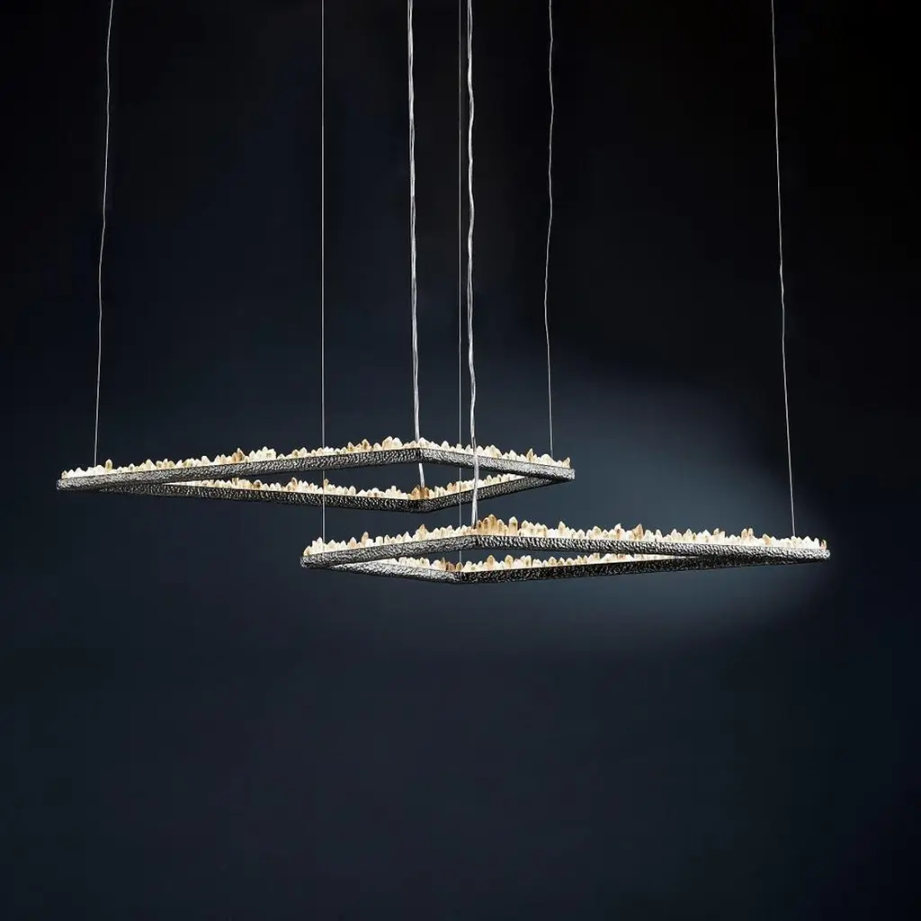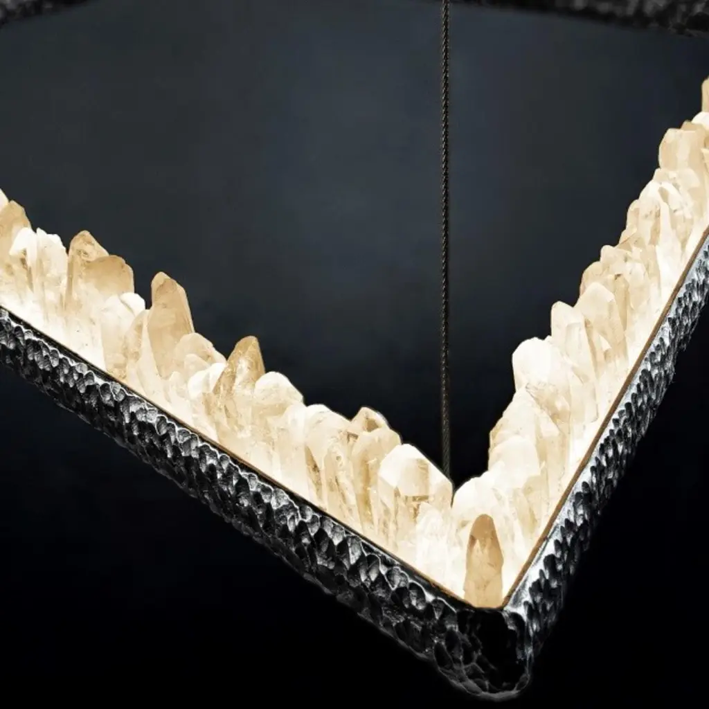 Quartz pendant light III by AverDimensions: W 106 x D 56 x H 6 cmMaterials: Natural rocks, high-quality cut crystals, jewelry chains, hand blown glass, other.Also Available: Matte black, rustic silver, oxidized graphite, and rustic bronze.A series of linear and Minimalist lamps created to be used preferably in sets, creating a shoal effect. It has a fine line of translucent quartz tips covered by a delicate ceramic sculpted elegantly by our artisans by hand.All our lamps can be wired according to each country. If sold to the USA it will be wired for the USA for instance.