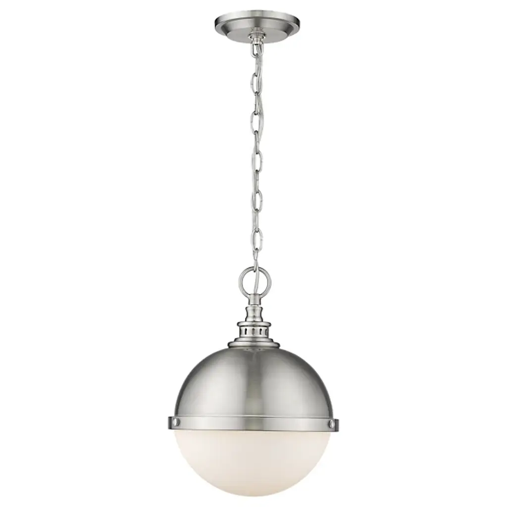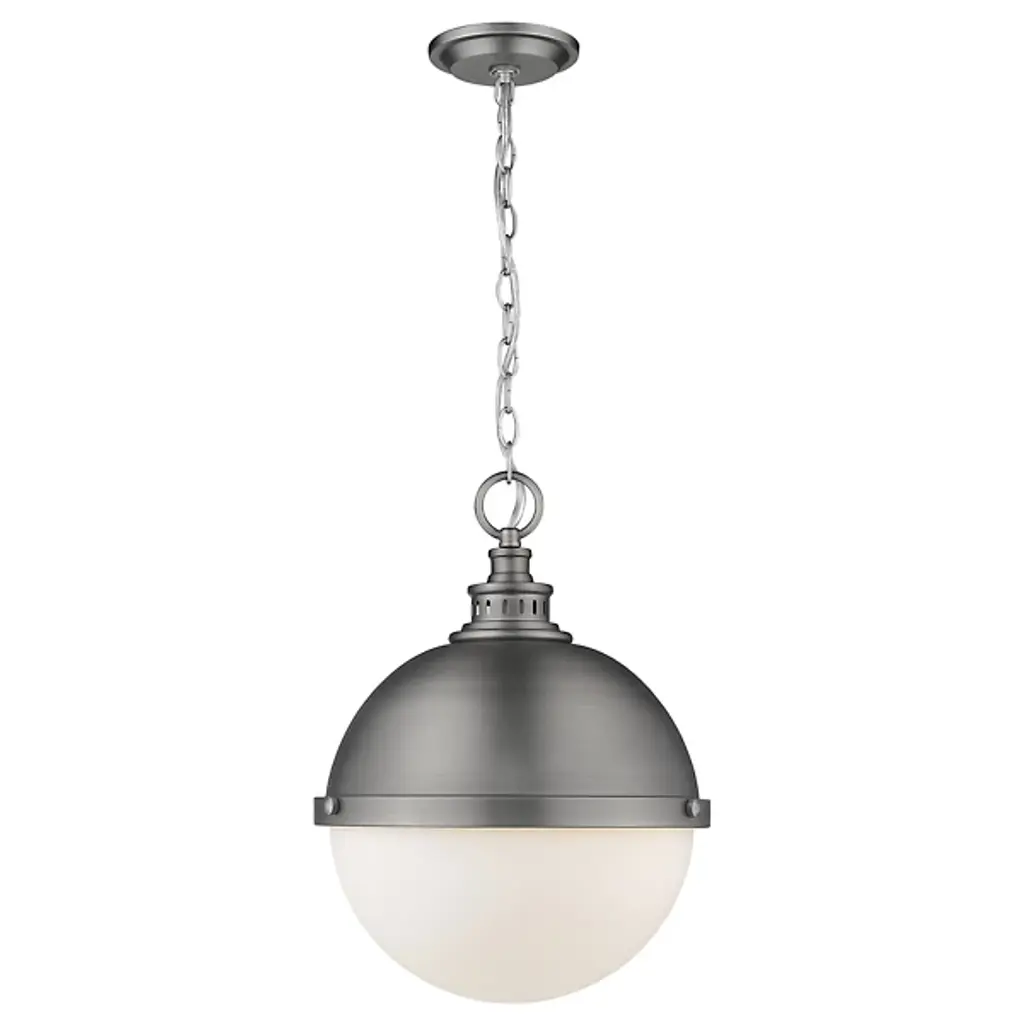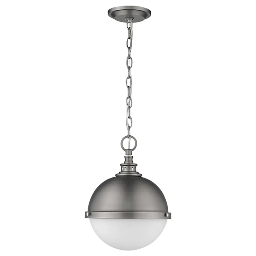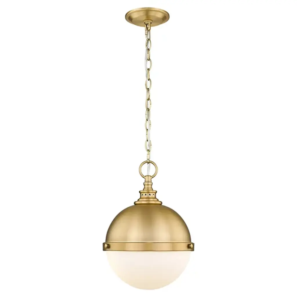 Bright, bold, impactful. The Quentin Pendant from Alder & Ore is an unmissable sphere, defined by the intricacies of its industrial accents. The pairing of fine accents and simple shapes lends the piece to various home styles. The pendant streams down with a time-tested chain-link suspension. A tiered finial atop the globe reminds one of the vented features of industrial lighting. The globe looks dramatic in its 2-tone hemispheres. The bottom opaque diffuser receives a golden hue as it filters out an ambient downlight.