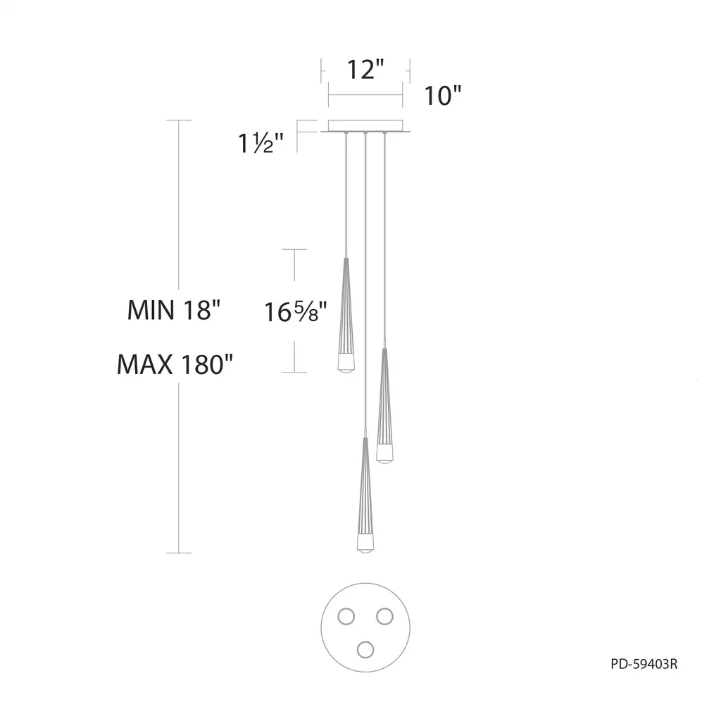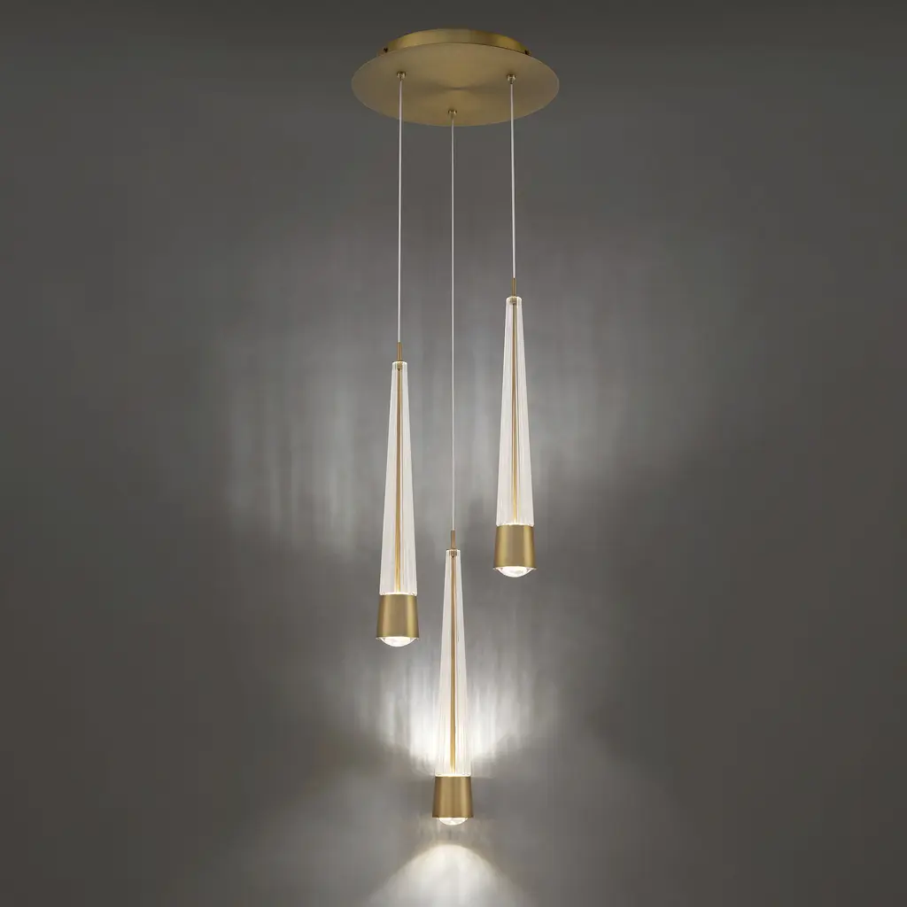 Quill Led 12 Inch Aged Brass Multi-Light Pendant Ceiling Light, Dweled